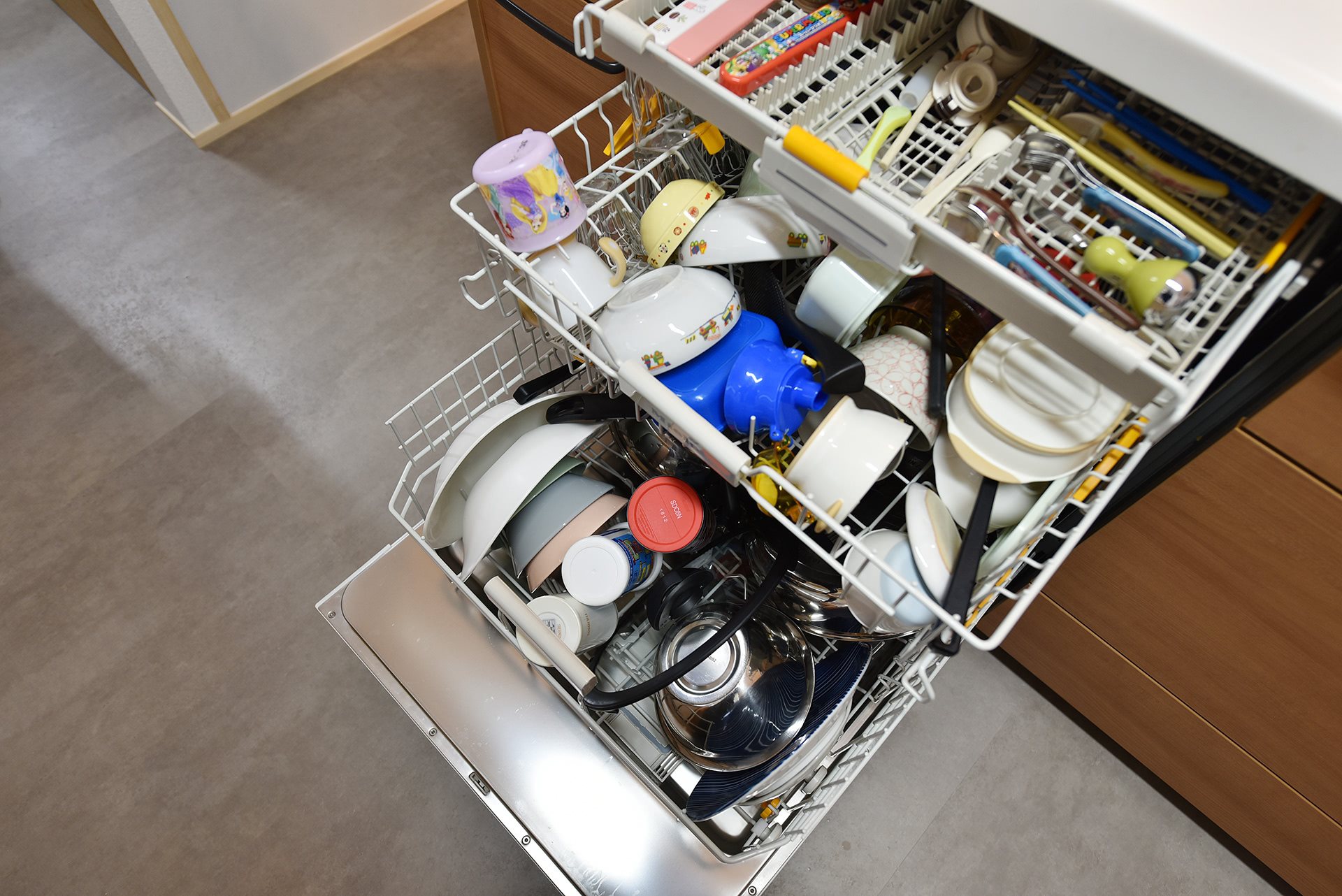奥様一推しはミーレ社の食器洗浄機(大)。5人の1日分の食器が1回で洗えてしまうそうです。