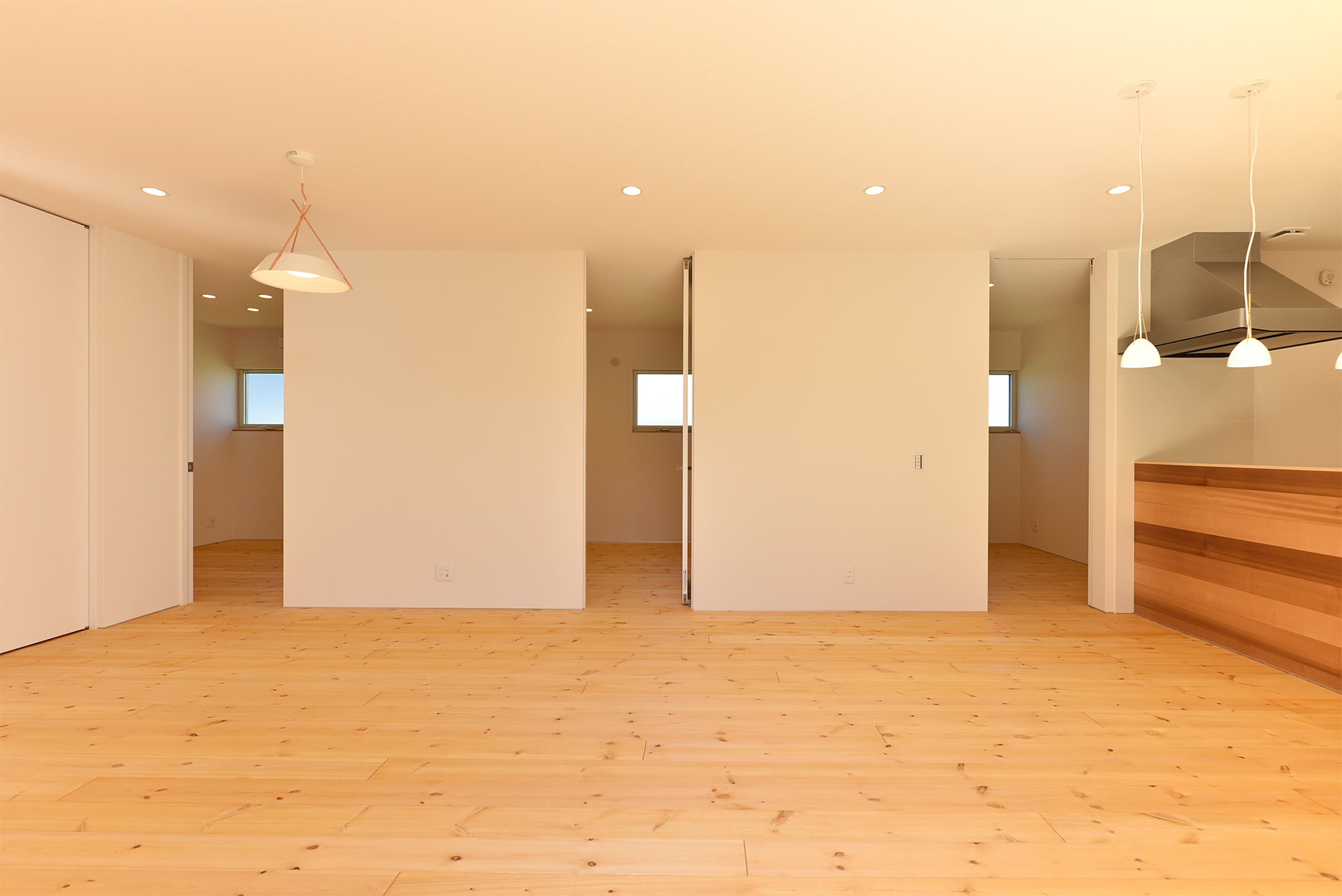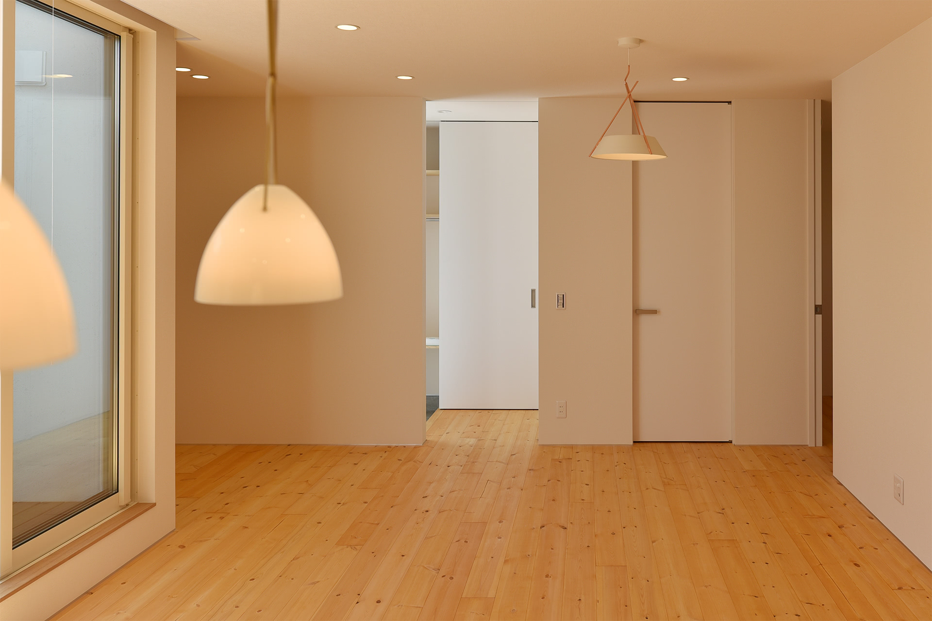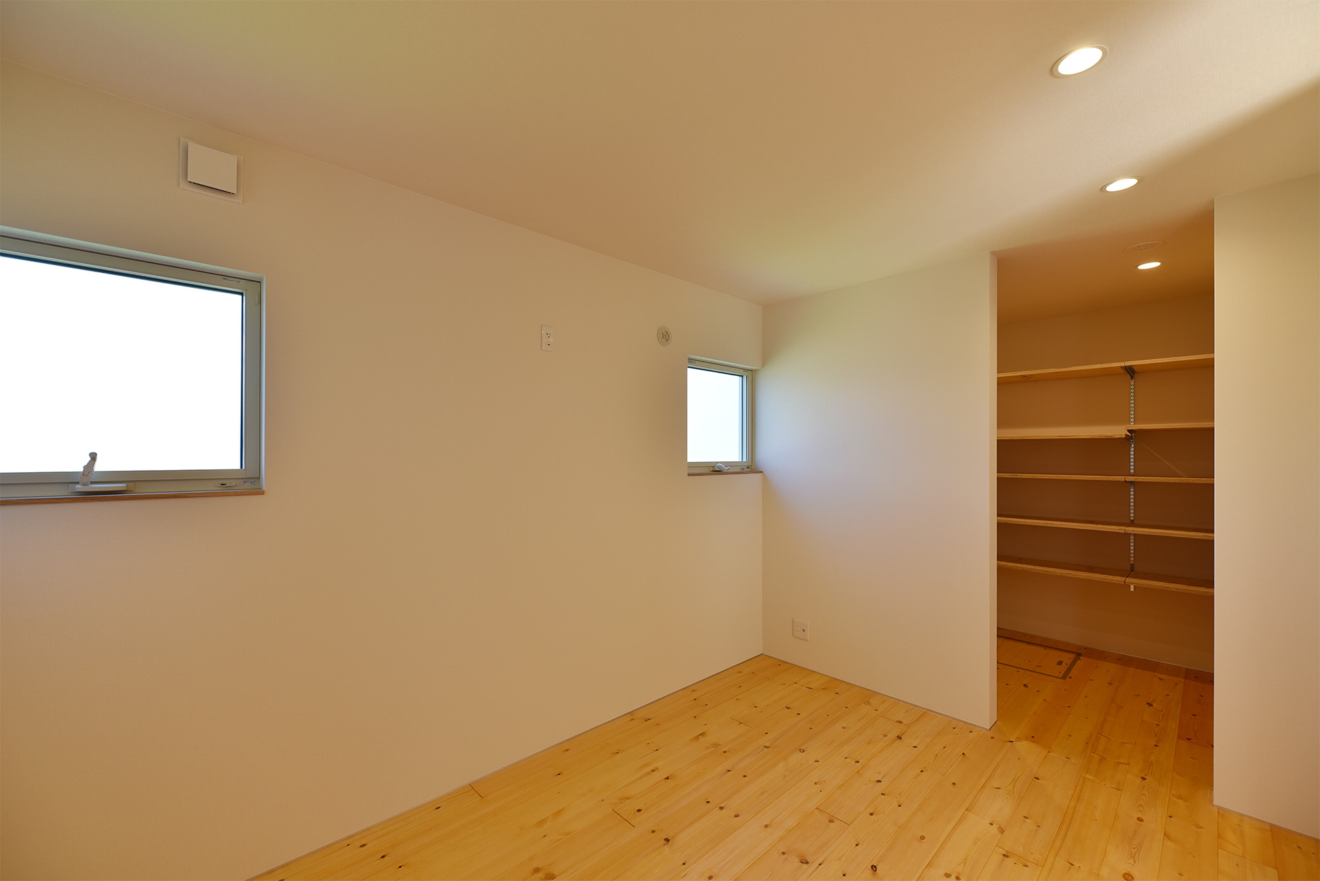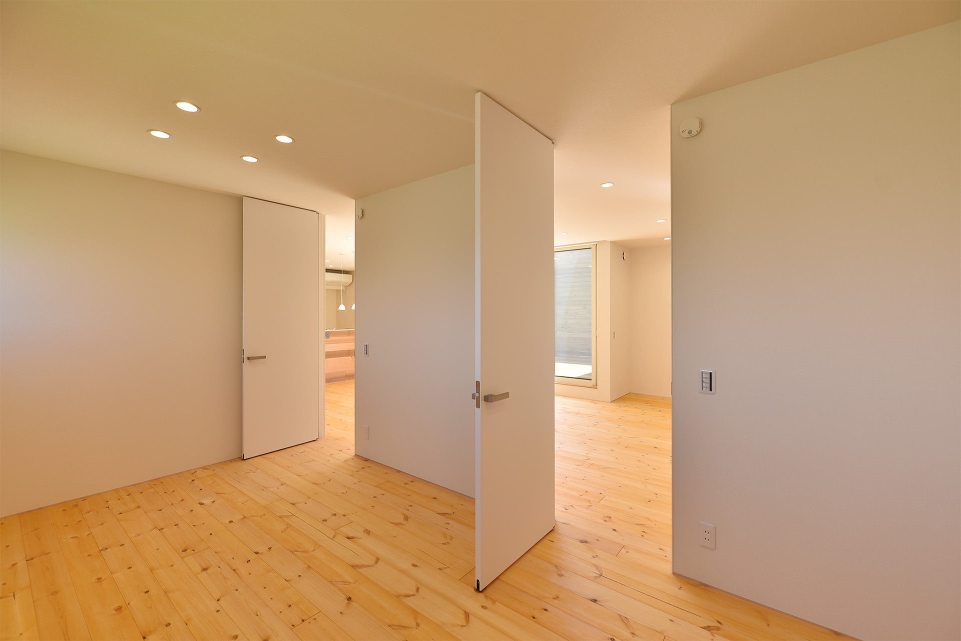 子供部屋は今は大きく使い、将来的に間仕切れるようドアを2つ。