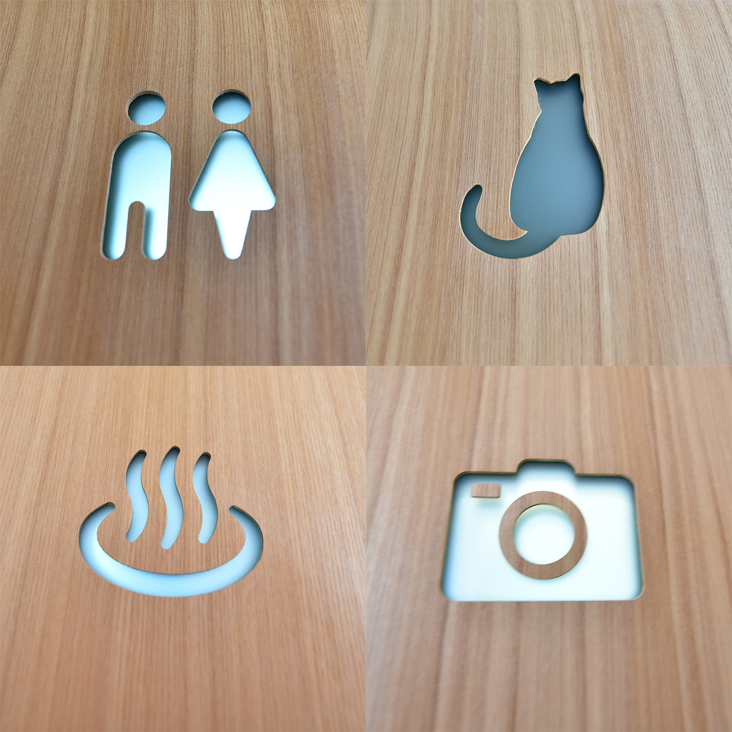 ドアに記されたピクトグラム(案内記号)がかわいらしいですね。