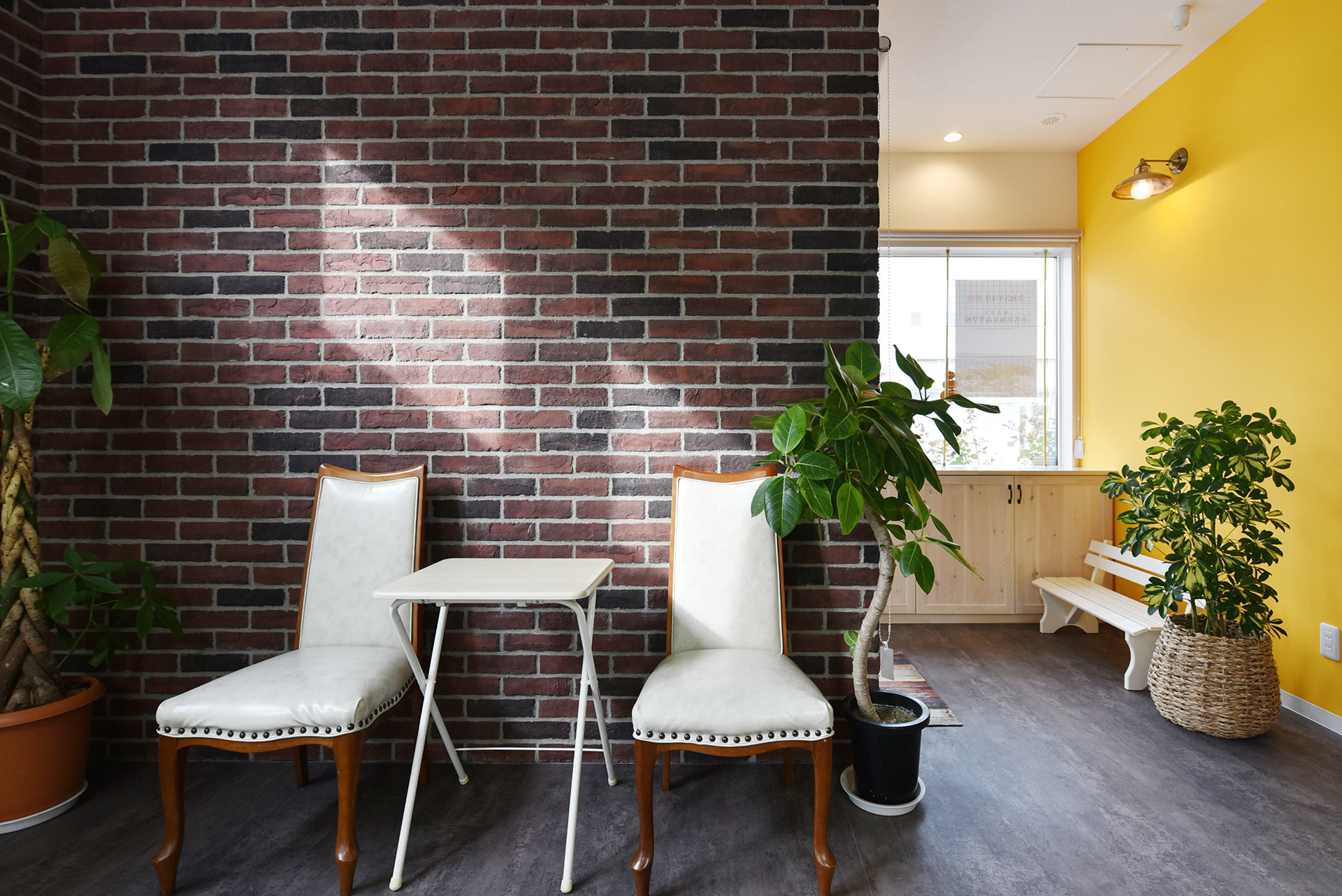 写真館の中は素材や色で変化をつけ、撮影場所として様々な提案ができるようになっています。こちらはブリックタイル貼り。