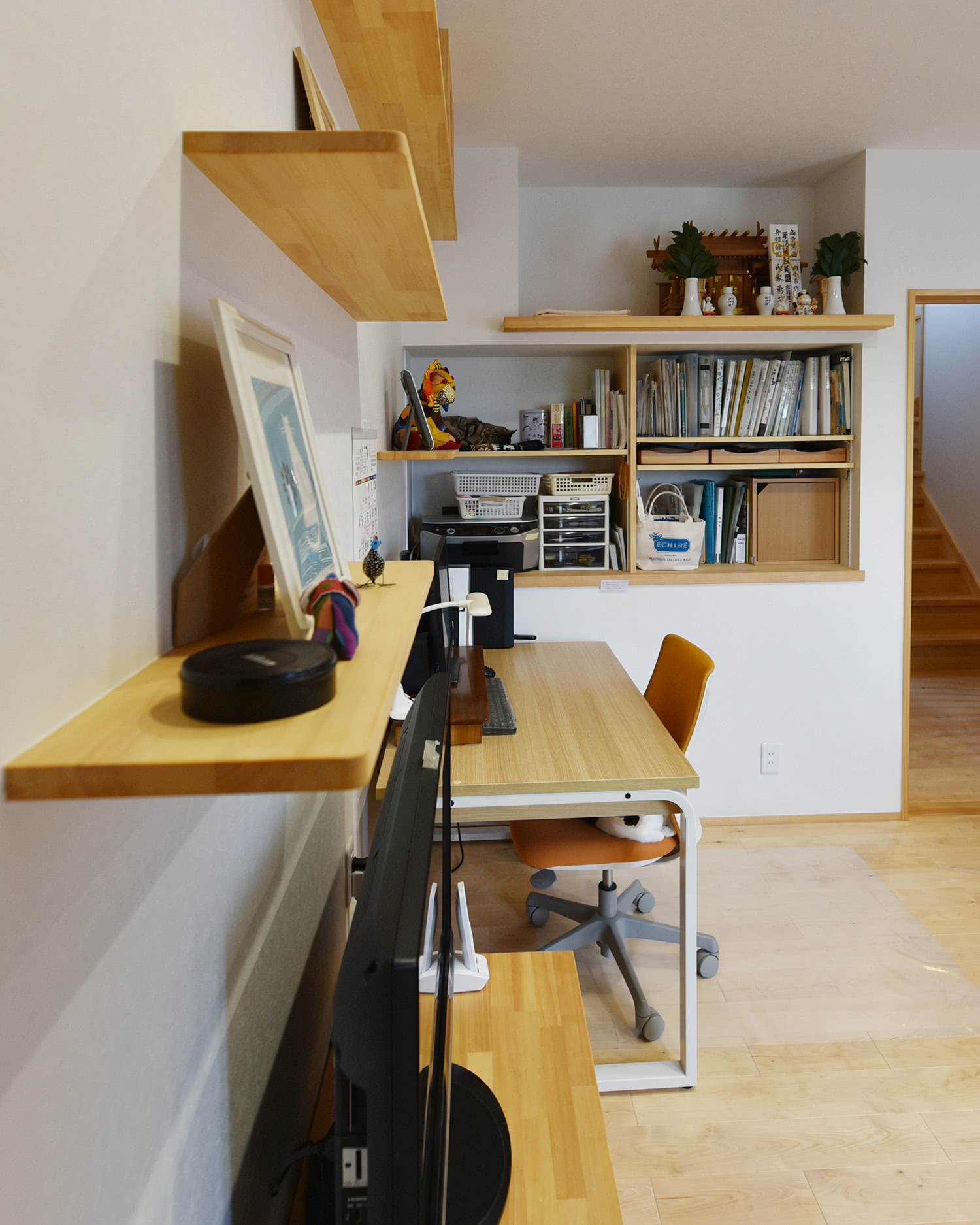 奥様の書斎スペース兼猫のお昼寝場。こちらもスッキリ。神棚スペースも。