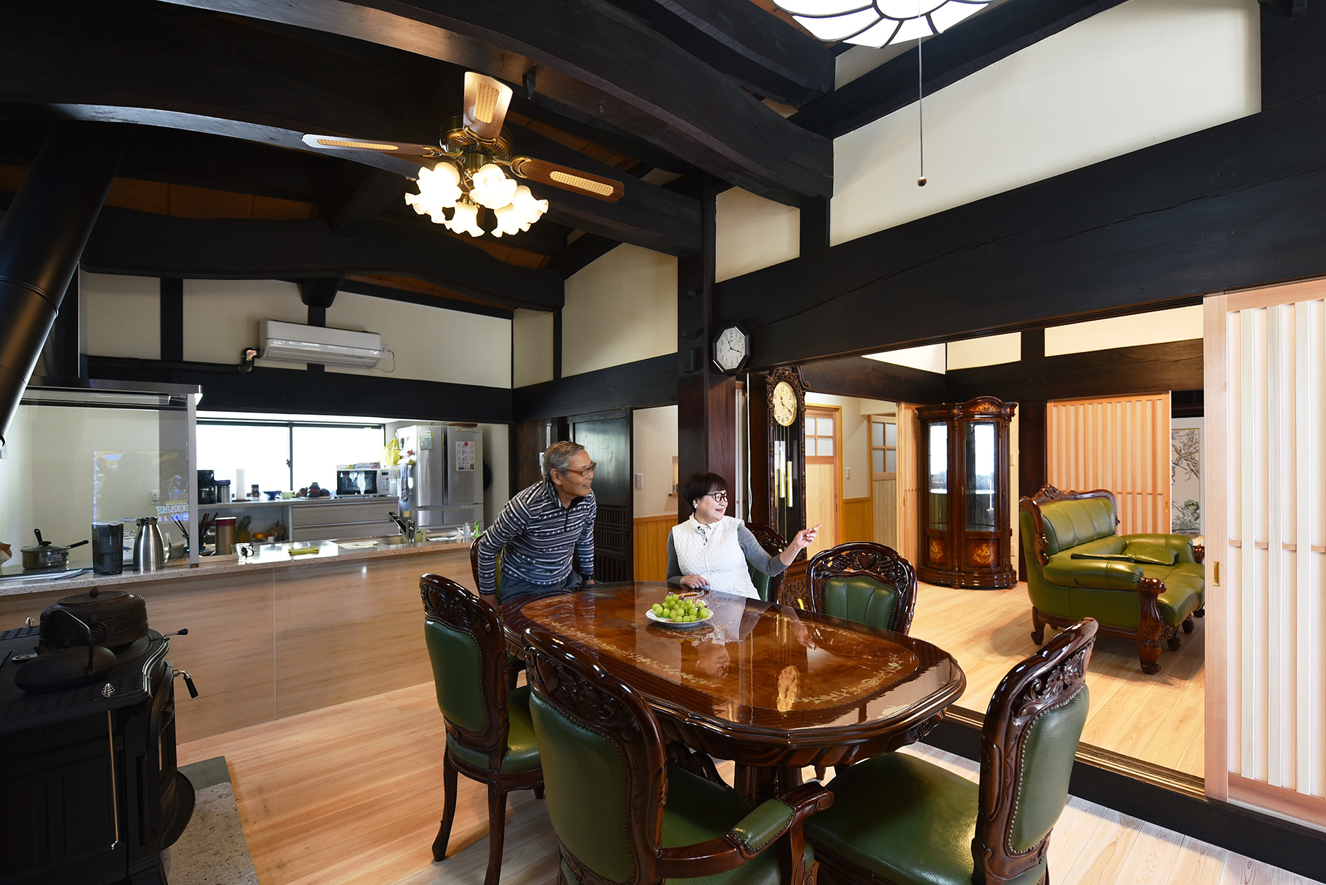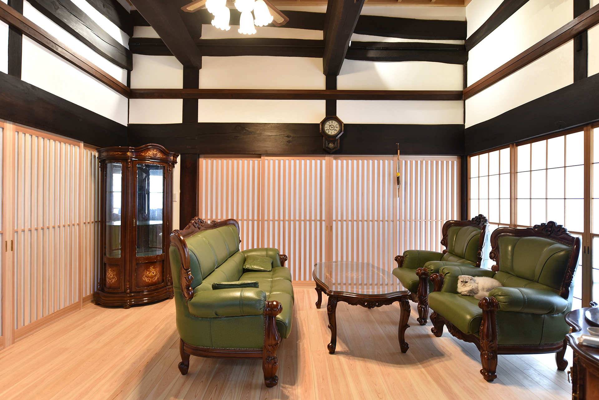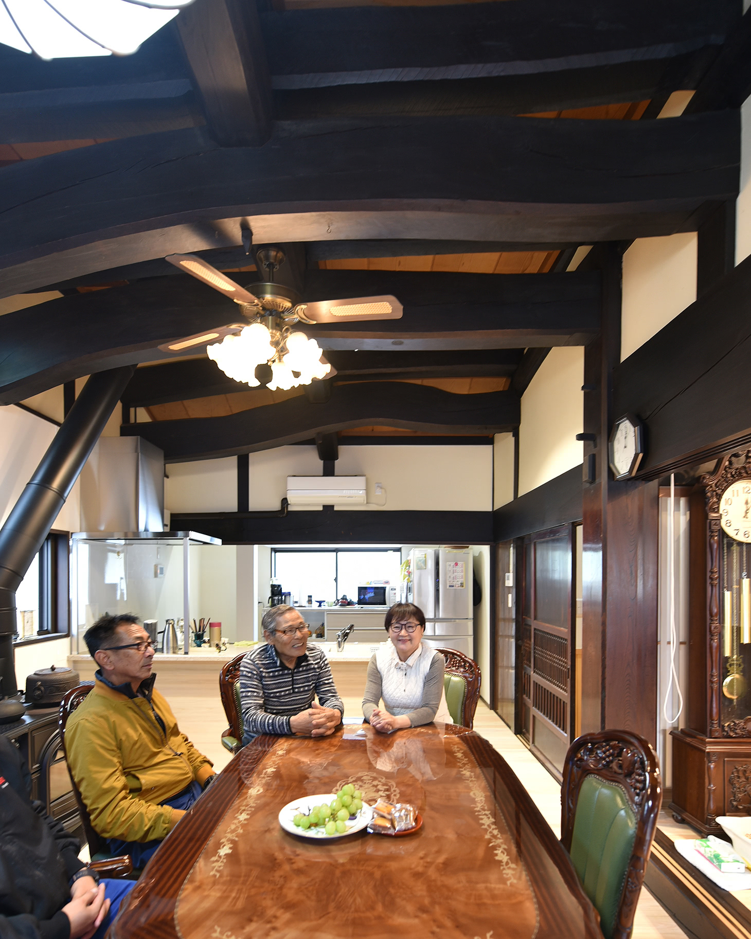 東日本大震災と台風という大きな災害に遭い、建て替えも検討されていましたが「ご先祖様が裏山から木を切り出してつくった家を大事に残したい。」と住み継がれることを決意しました。