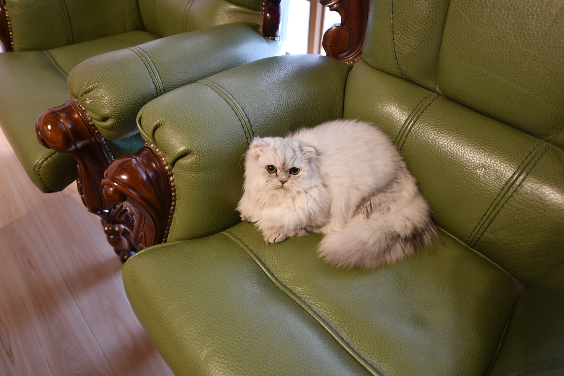 生後6ヶ月のミヌエットのエンちゃん。重厚な家具にも決して引けを取らない貫禄。