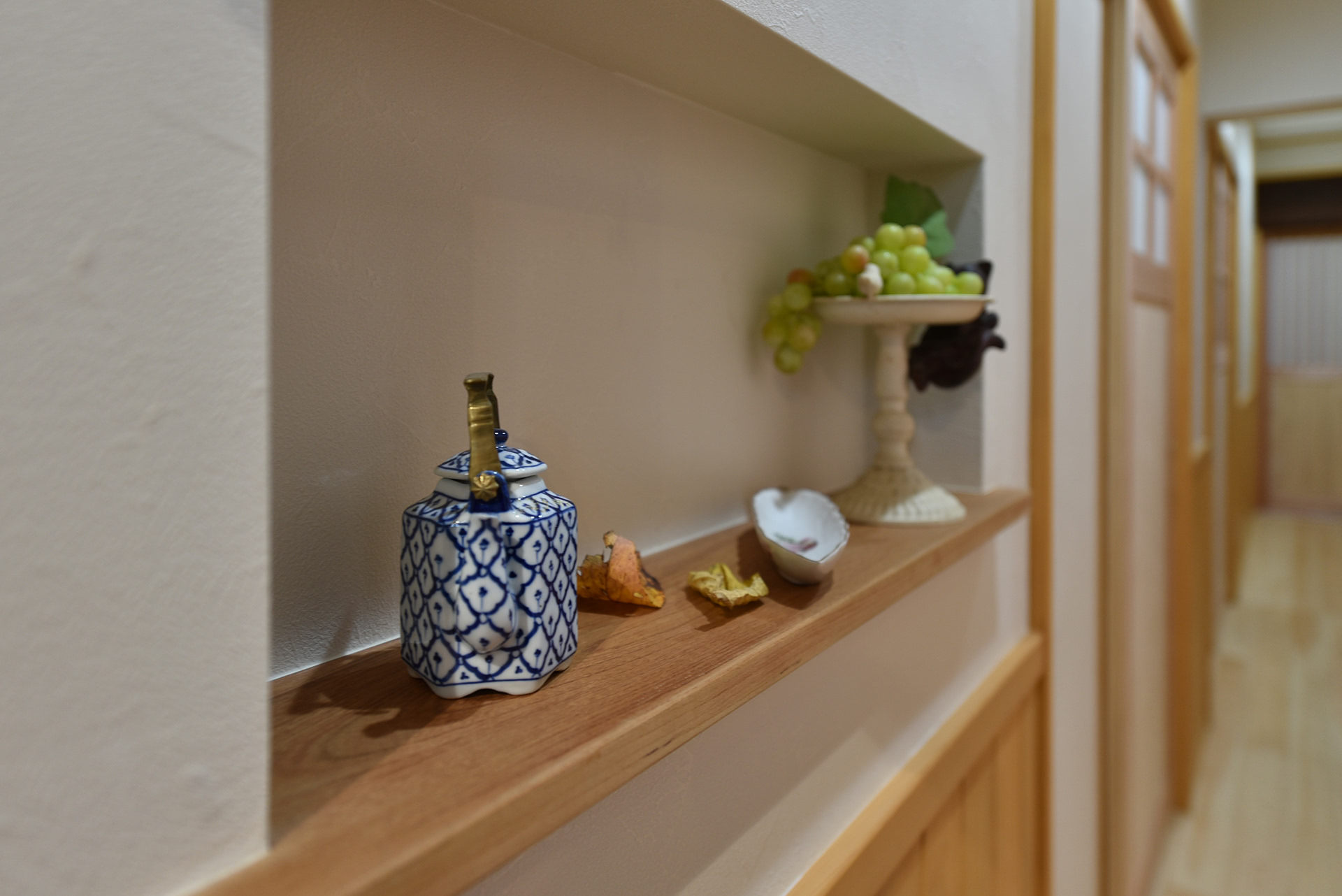 小物が素敵に飾れるようにニッチスペースを何箇所もつくりました。