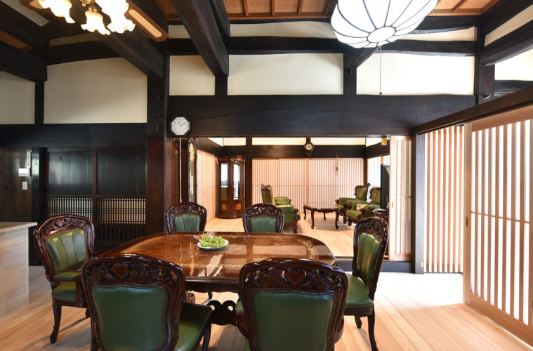 黒々とした大径の梁が圧巻の、築100年の古民家再生です。