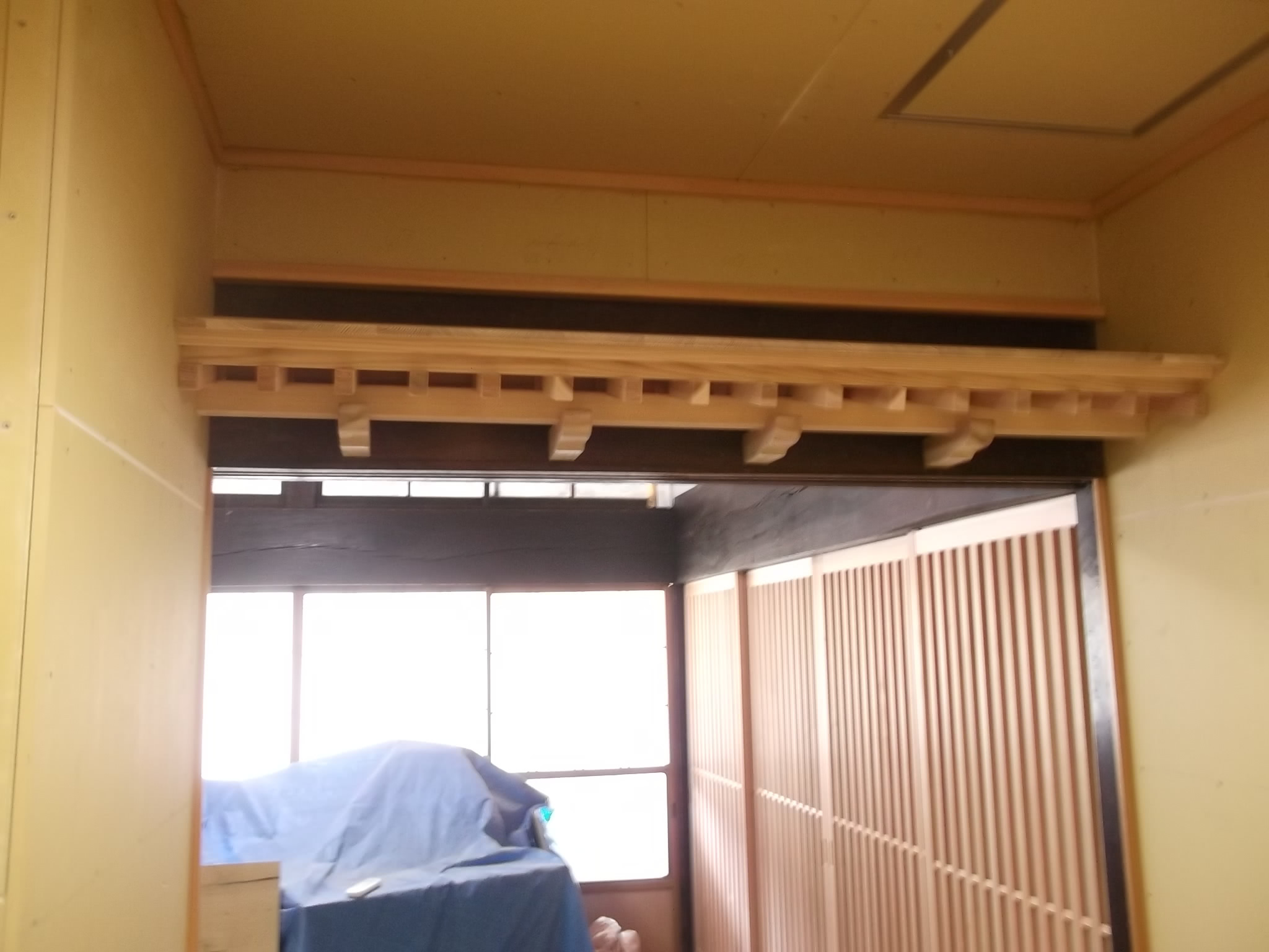 廊下から和室への入り口に遊び心(と言えないほど立派)の軒をつけました。