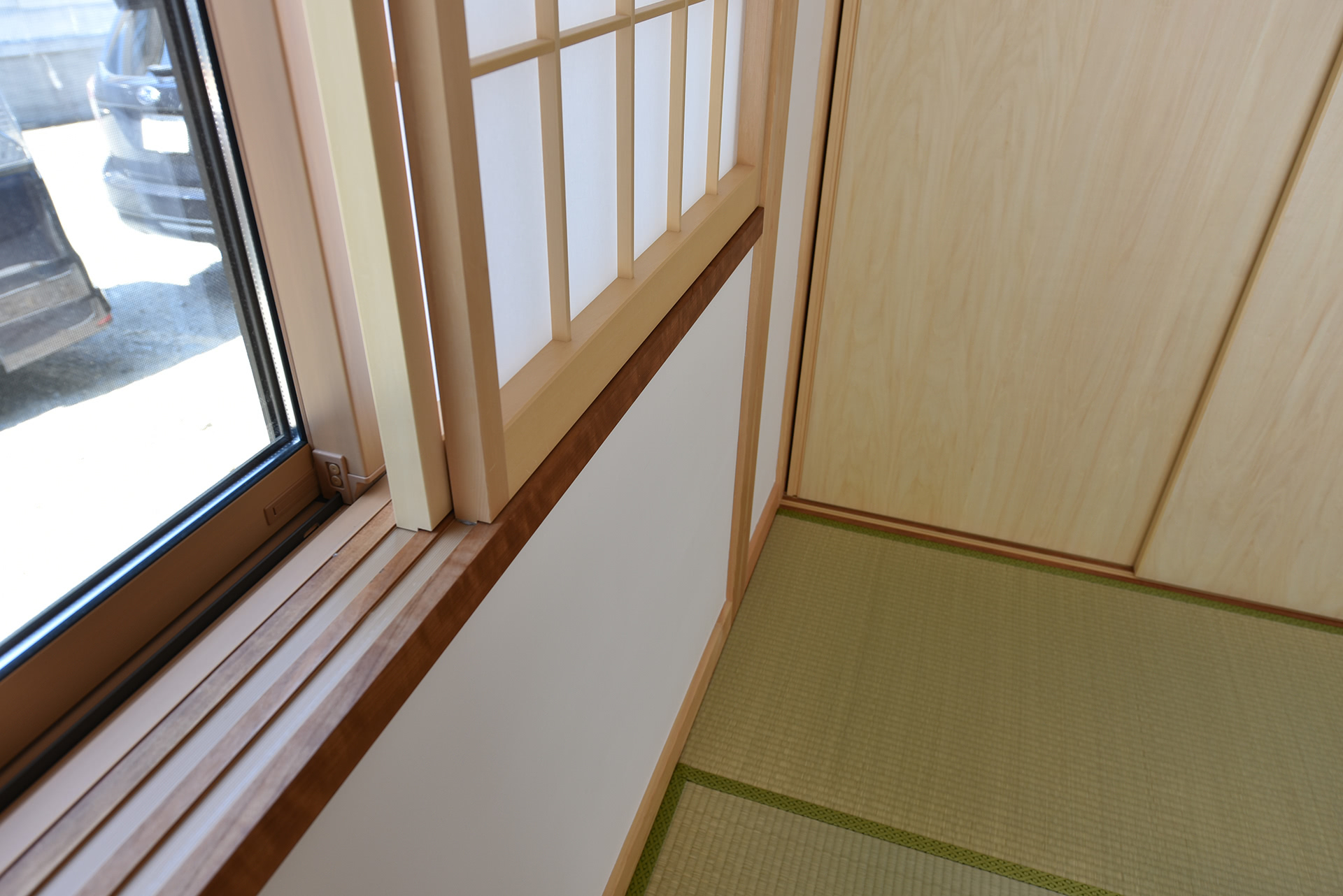 お母様の和室。障子や襖の敷居はサクラの無垢材を。