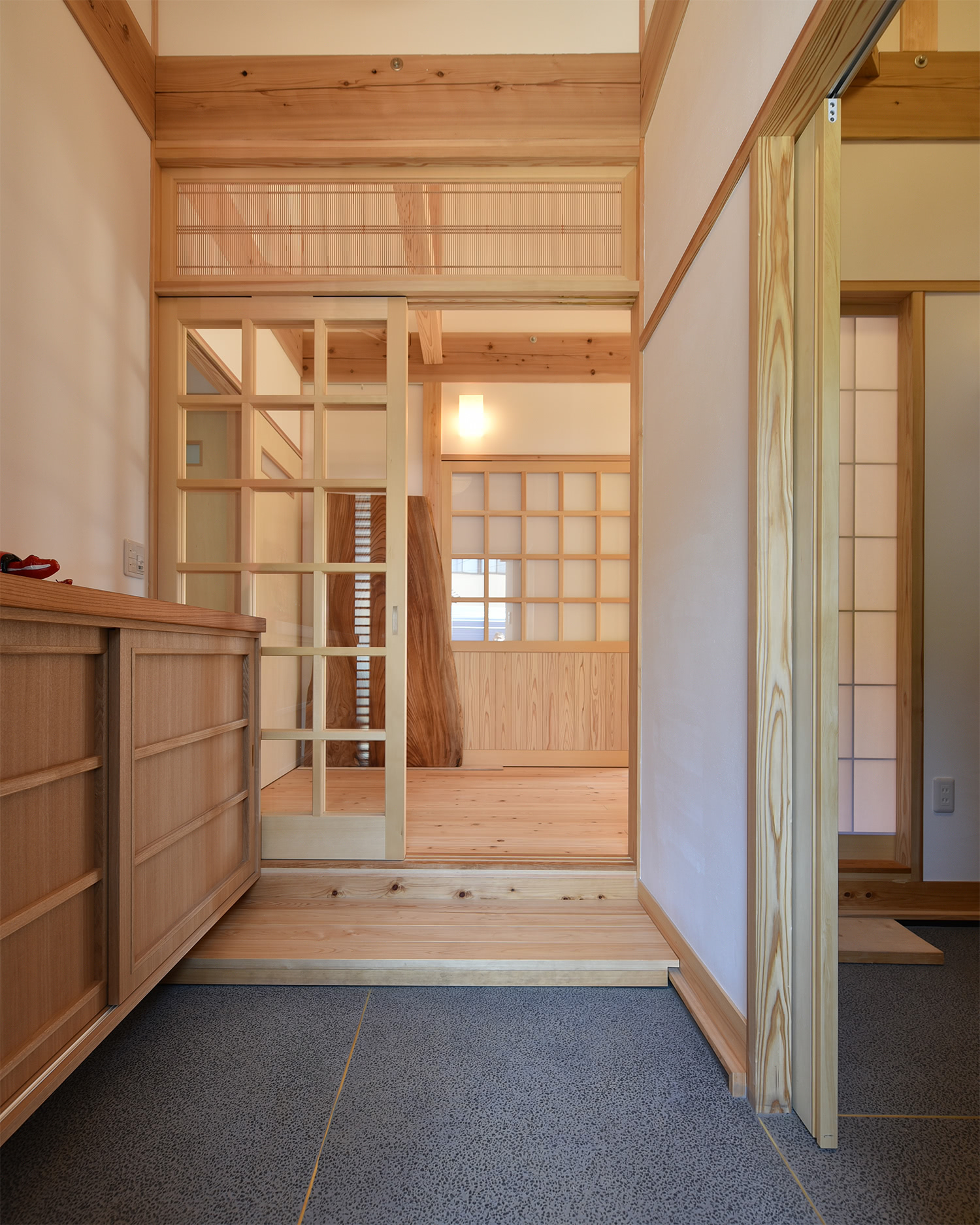 左よりお母様の部屋、玄関納戸、玄関。欄間も設けています。