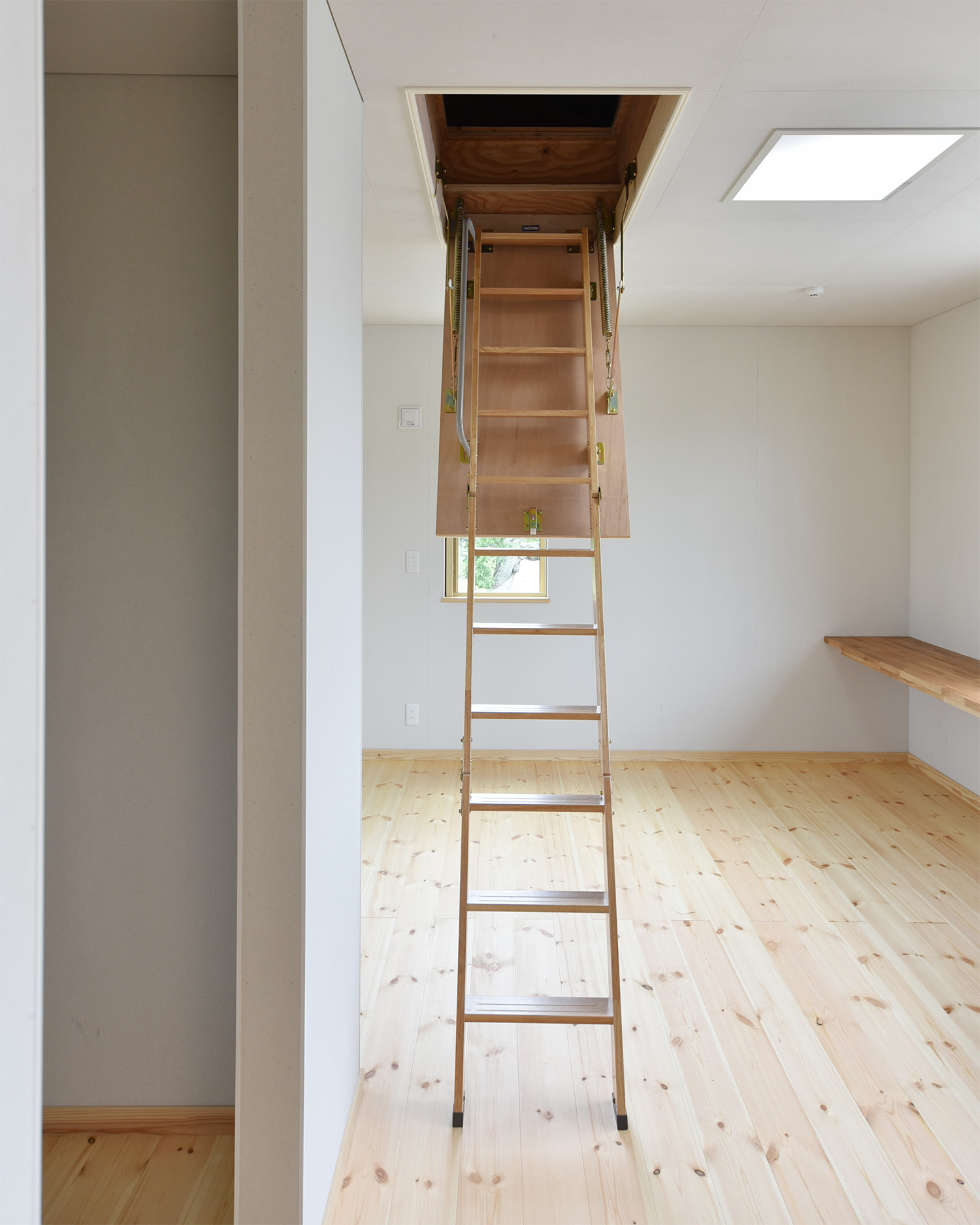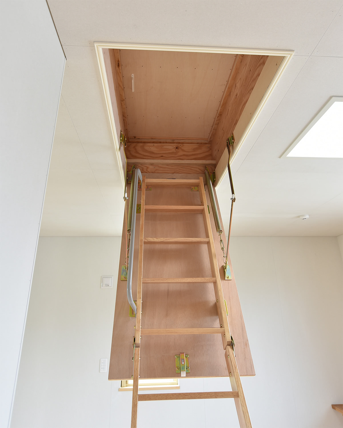 平屋建てなので、水が上がった場合の臨時的な人と家財の避難場として小屋裏を活用できるよう梯子を設置。