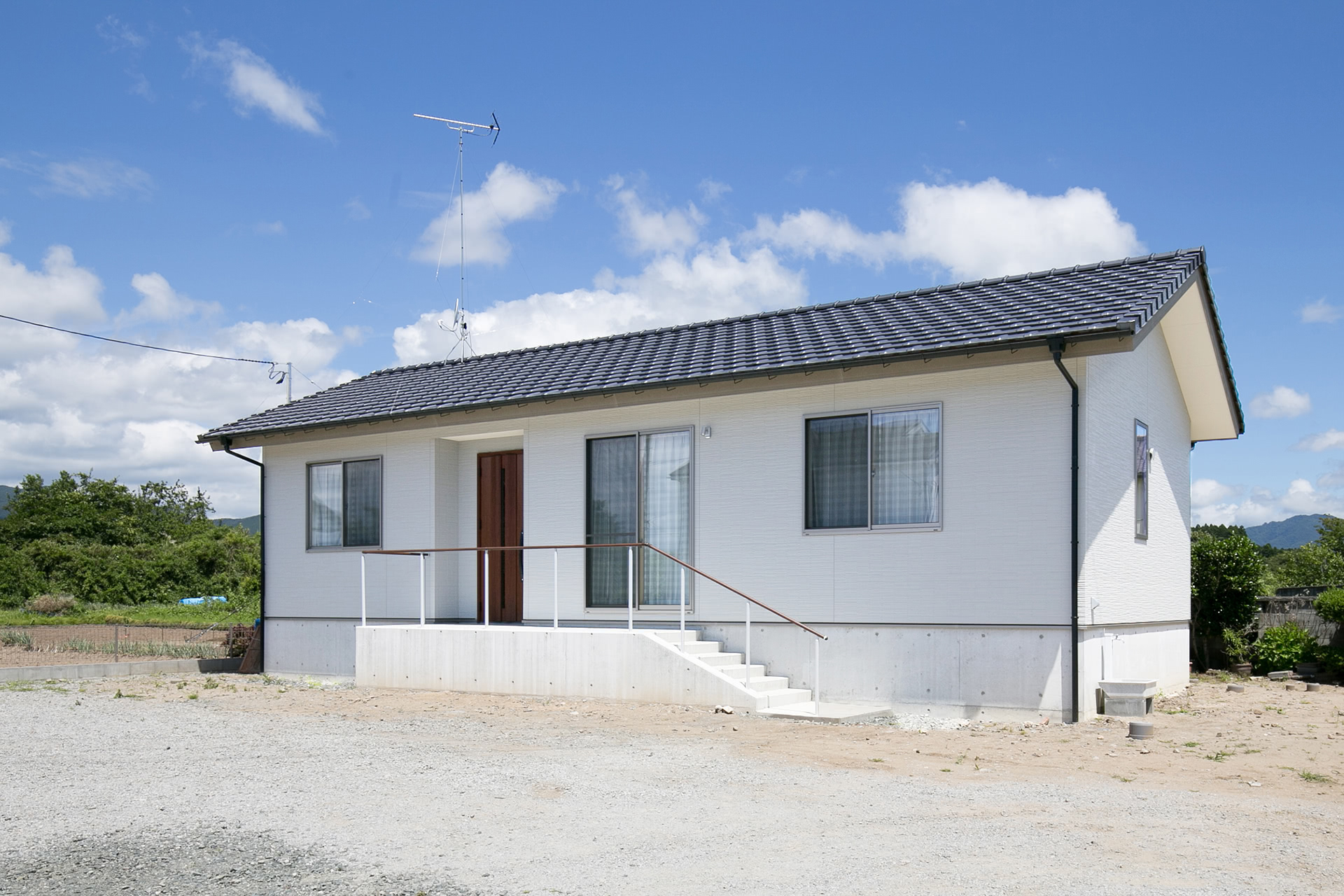 床上30cmまで浸水したので、約1mの高基礎で設計。建物はシンプルに、備えは充分に。慣れ親しんだ土地で暮らしたいというご要望に応えました。
