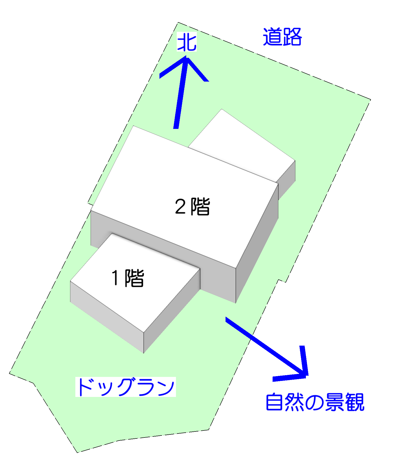 それらを実現するため、まず120坪の敷地を南北に分けてプランニングすることからスタート。北側にはエントランスとサロンを配しパグリック要素高めに、そして南側には犬たちが走り回れるドックランを設けるなど、人も動物も癒やされるプライベートな空間になりました。