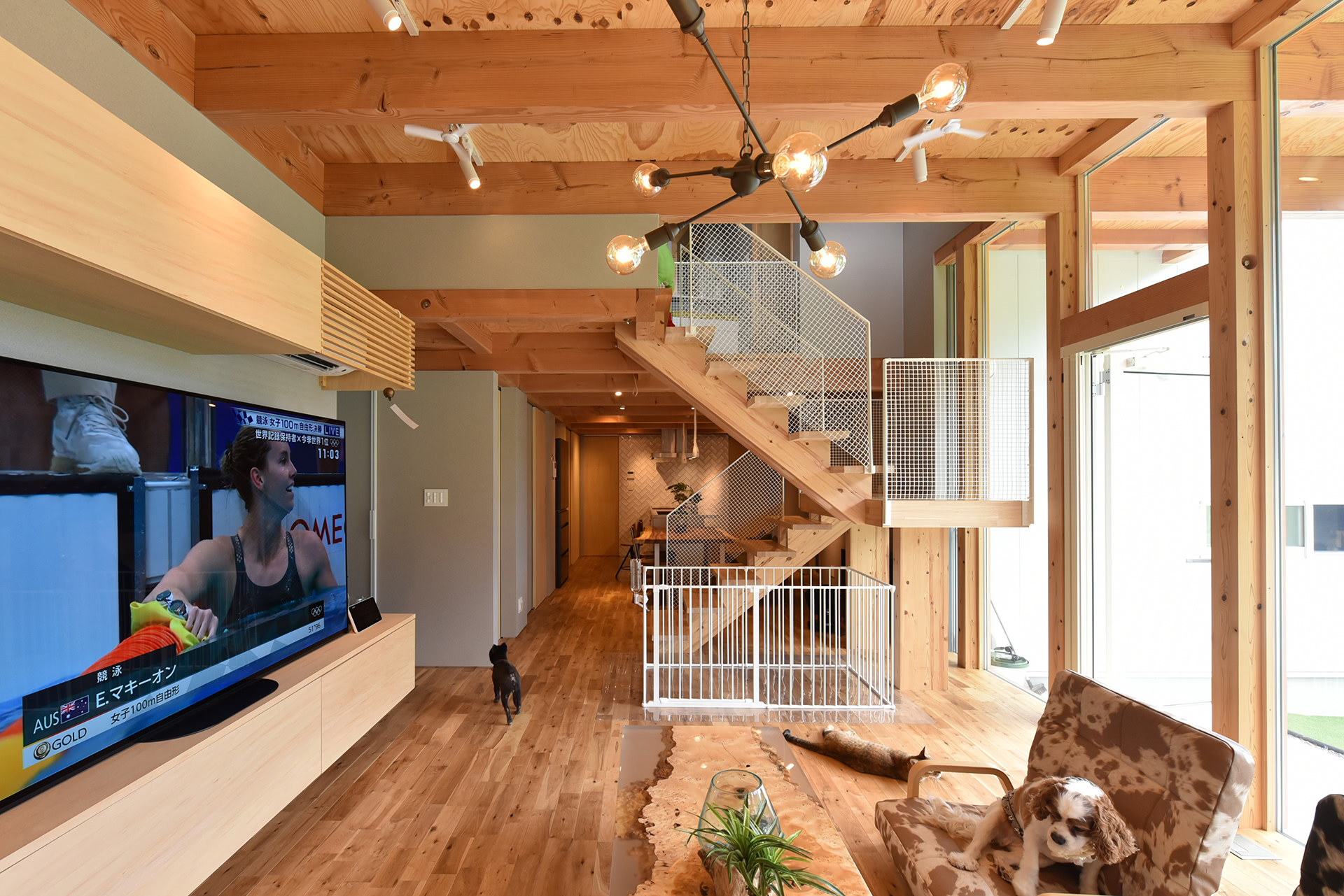 犬3匹と猫2匹、そして蛇1匹と賑やかに暮らす建主様ご一家。