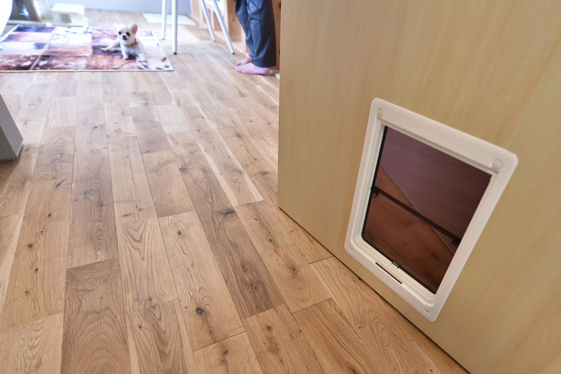 各居室には動物たちが自由に出入りできるドアを設置しています。