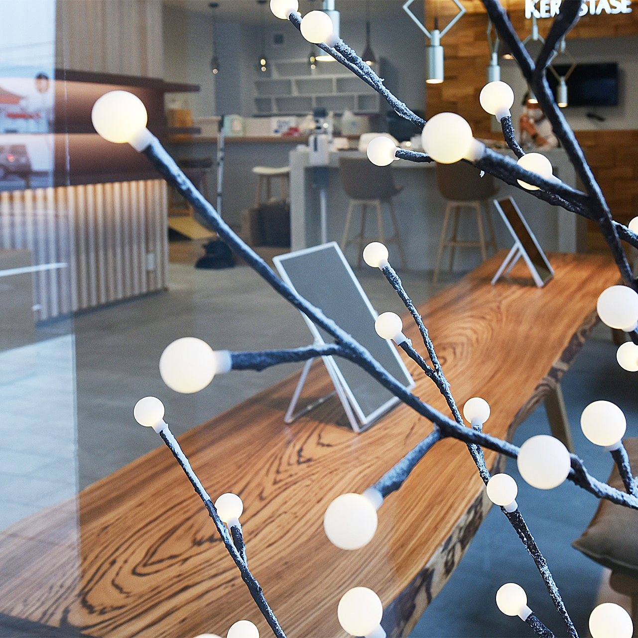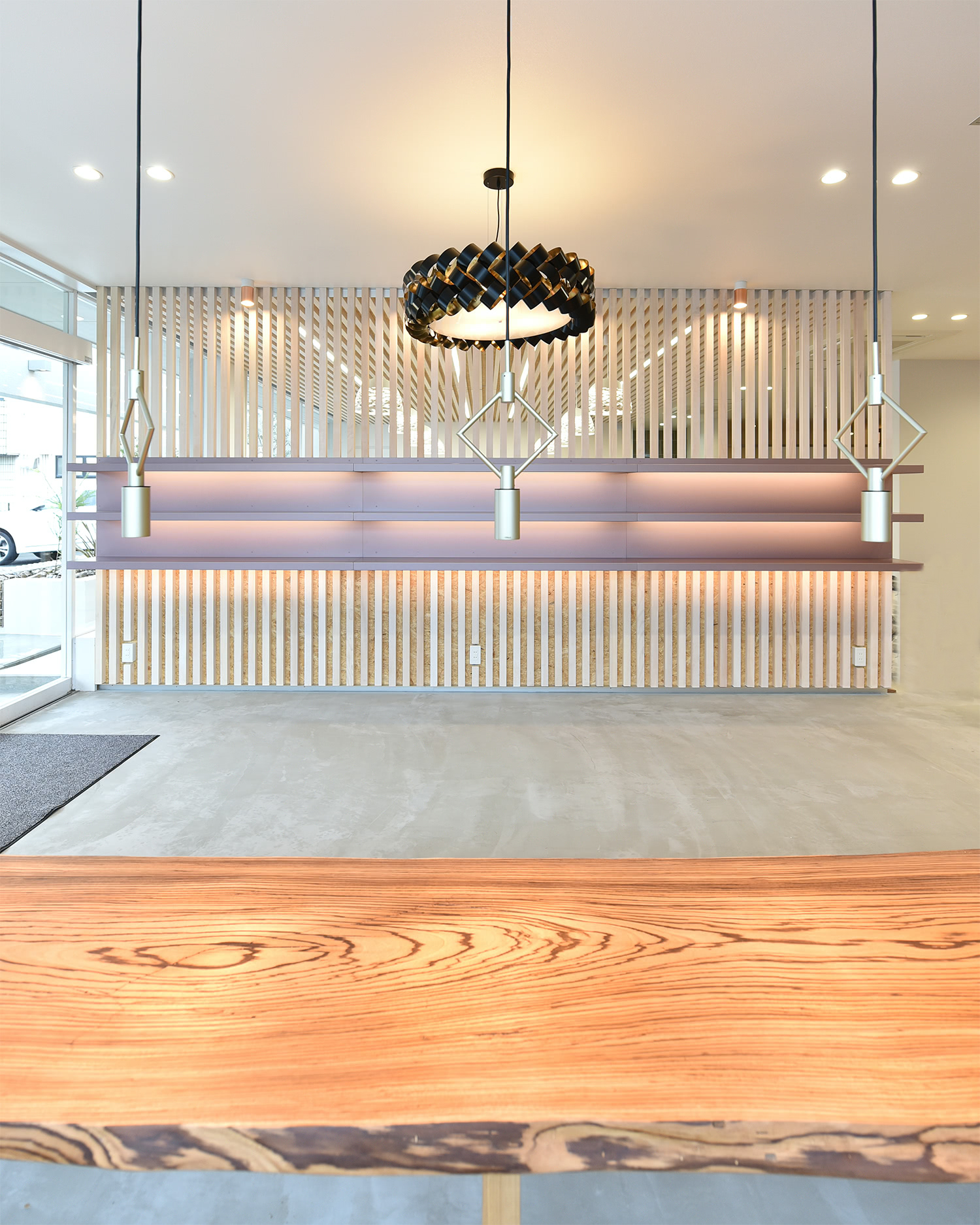 ナチュラルな木材にブランドのサインを重ねているのがかっこいいです!