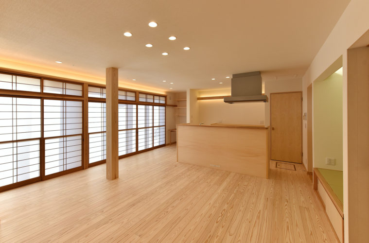 LDKに隣接して主寝室の和室。生活は断熱リフォームエリアでほぼ完結できるようになっています。