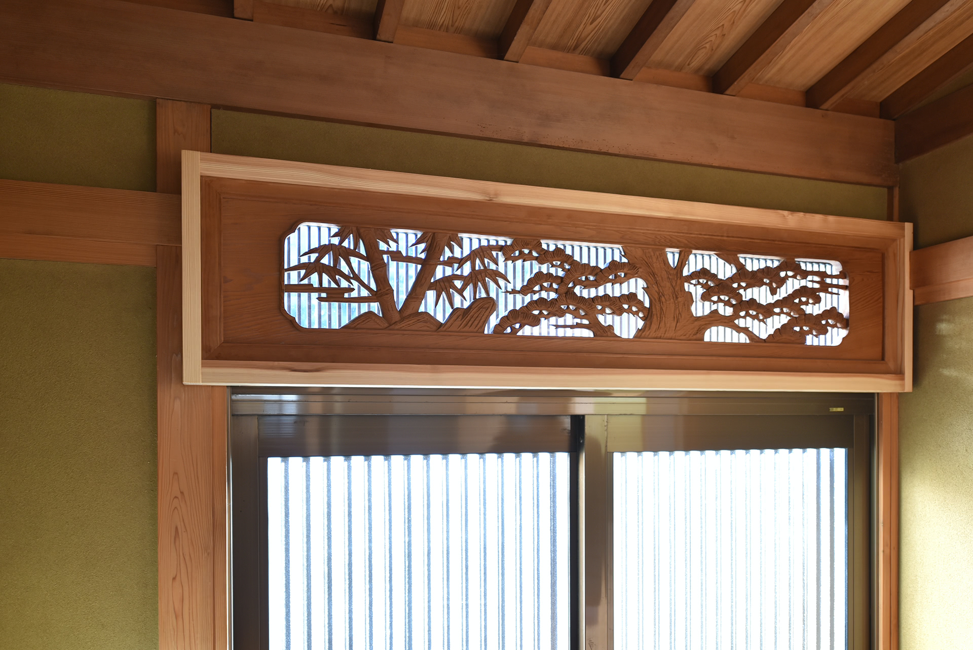 建主様の希望で、和室にあった欄間を明かり取りとして玄関に組み込みました。