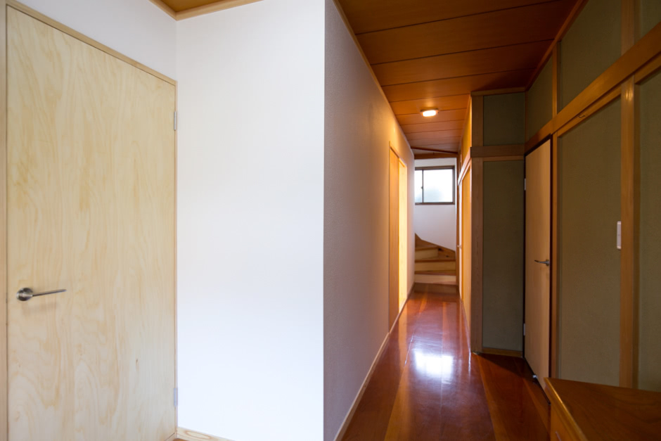 廊下を挟んで左側が今回の断熱リフォームエリア。