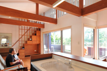 仕事でお付き合いのある協力業者さんからのご紹介で、今回の建主様とのご縁が生まれた奥山建築。立地を活かした「海が見える本格的な屋上付きの家を建てたい」という建主様のご要望に応えました。