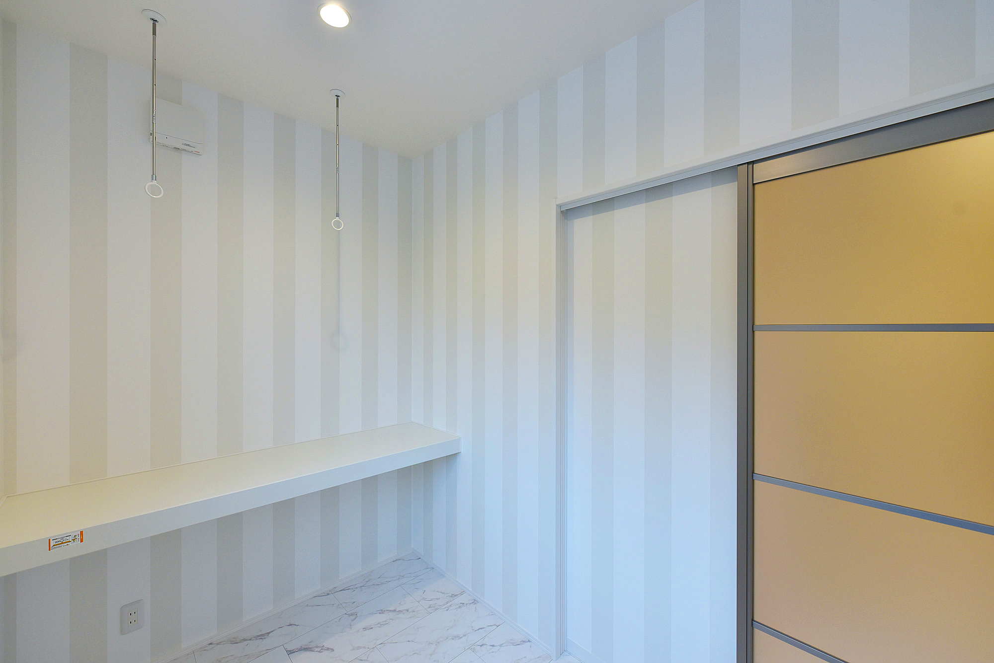 約3畳のランドリールーム。湿度センサー換気扇付き。