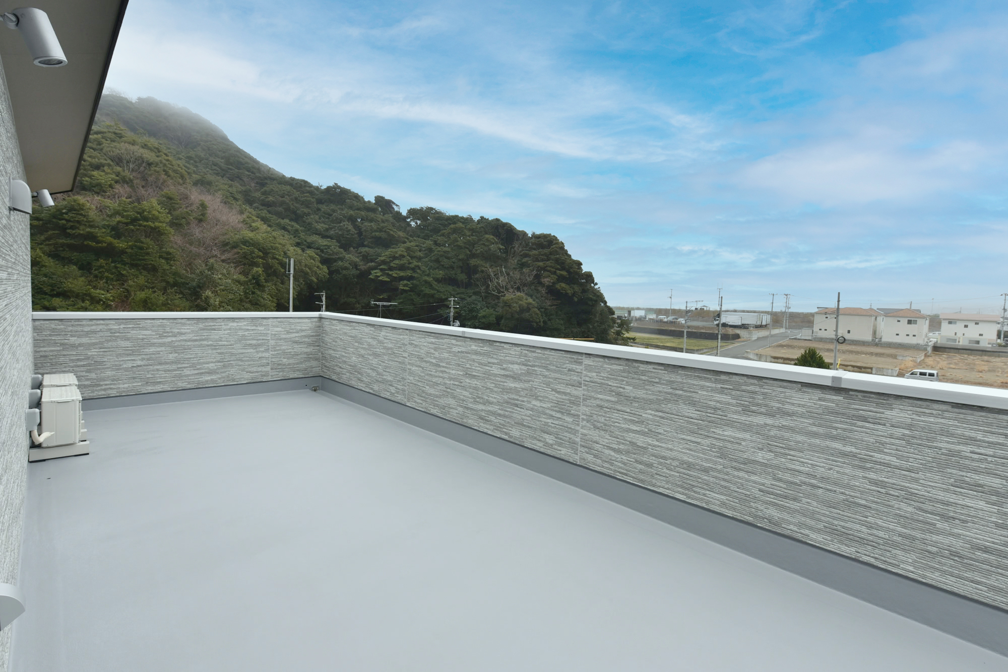 約40㎡のルーフバルコニー!水場と照明もあるので多目的に使えます。外部から見えにくいように手すりの高さは130cmにしています。