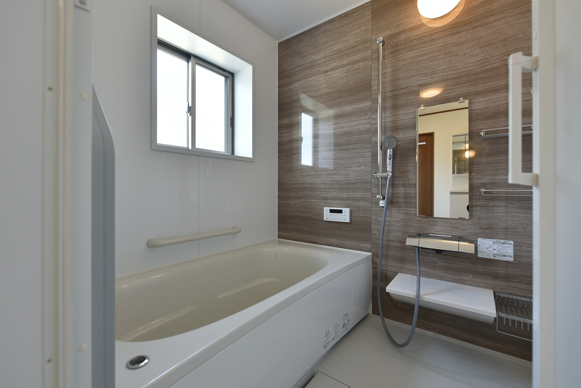 北側でも高窓で明るいバスルーム。
