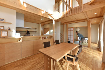 同じ敷地内にあるお姉さんのご自宅と行き来しやすい動線、仏間の和室、収納スペース、広いLDKというご希望を70㎡の中に確保しました。