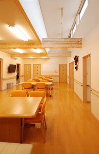 デイルームには天窓からの採光で昼間はいつでも自然の光を取り入れられうようにしています。