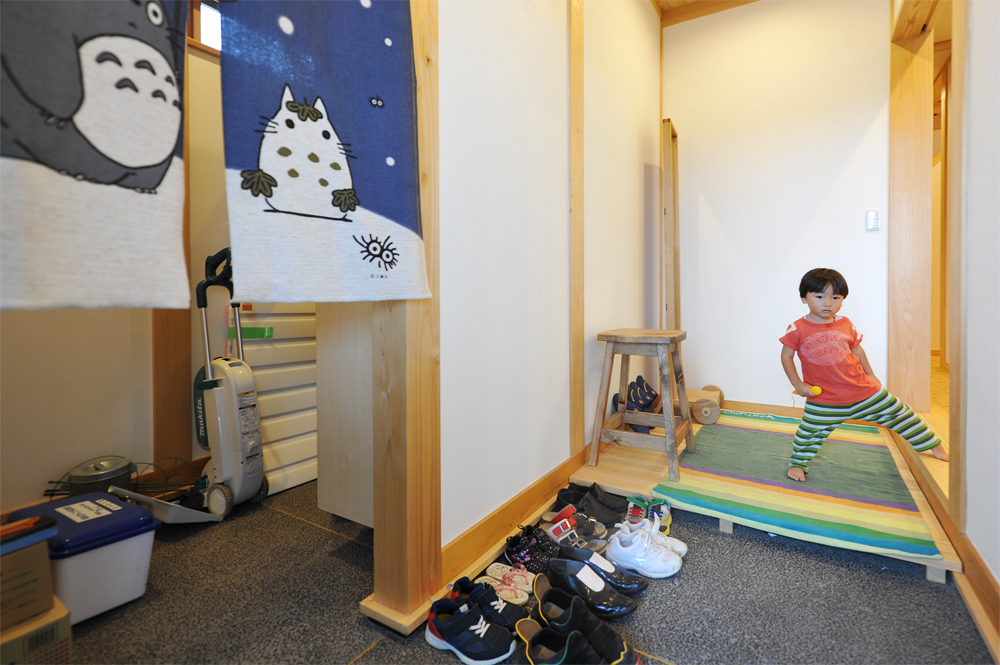 玄関には土間収納を広く取り、さまざまなものをしまえるように。