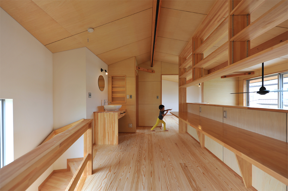 2階のフリースペースは1階とつながるオープンな空間。奥は子供部屋。