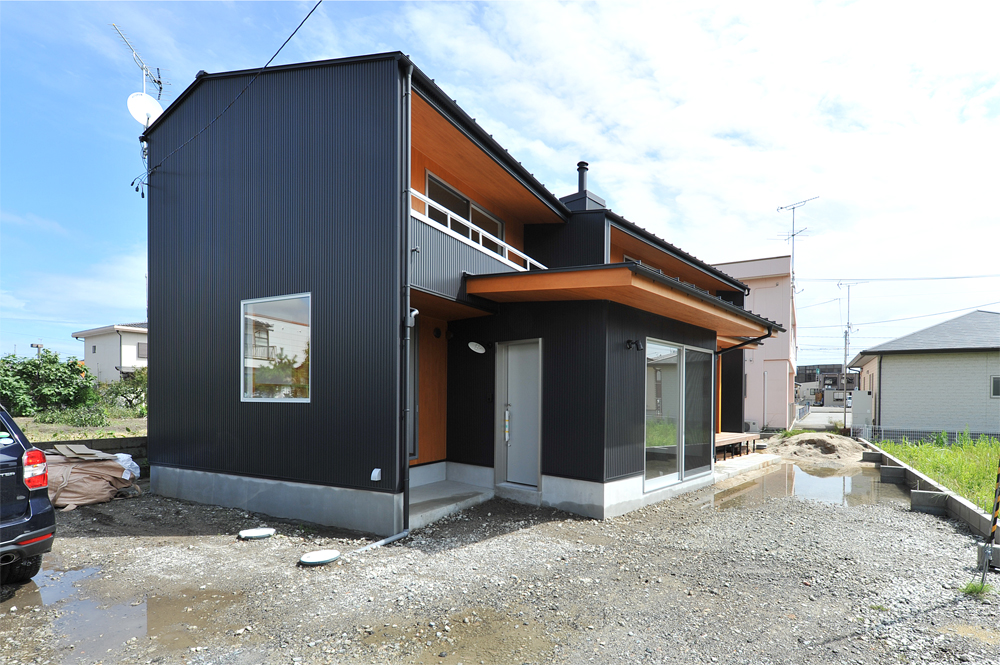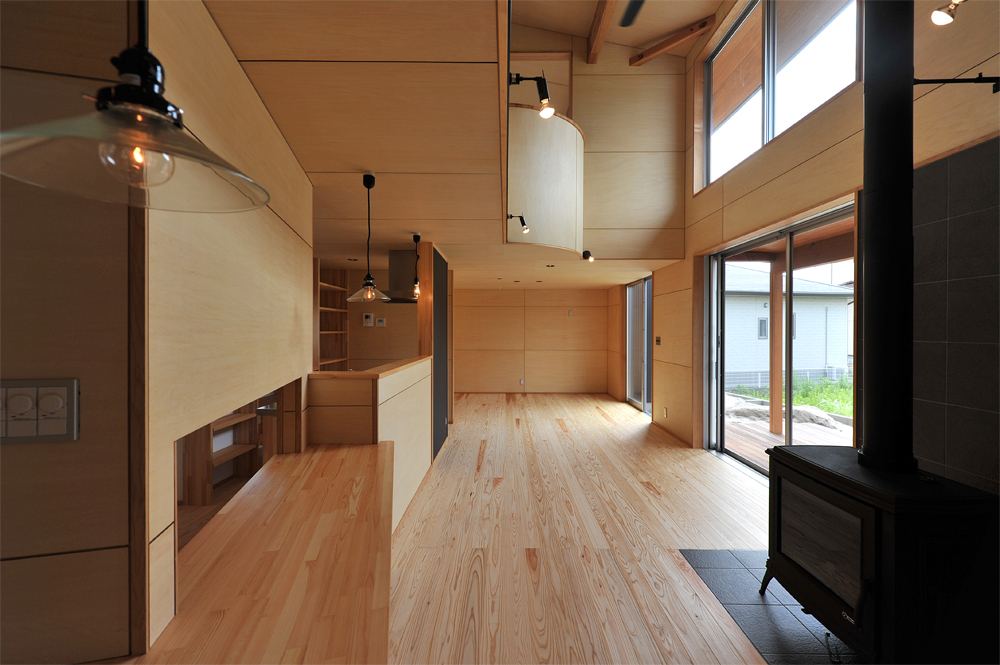 いわき市四倉の静かな住宅街の一角に、KD設計【※現:(株)佐藤大建築事務所】がまたまた個性的な家をつくりました。家の主役は、建主さまが家をつくる前に買ってしまったという、こだわりの「薪ストーブ」と、「へ」の字の形をした家の構造。建主さまの夢と、設計士のアイデアががっちりとハマった個性的な家が完成しました。
