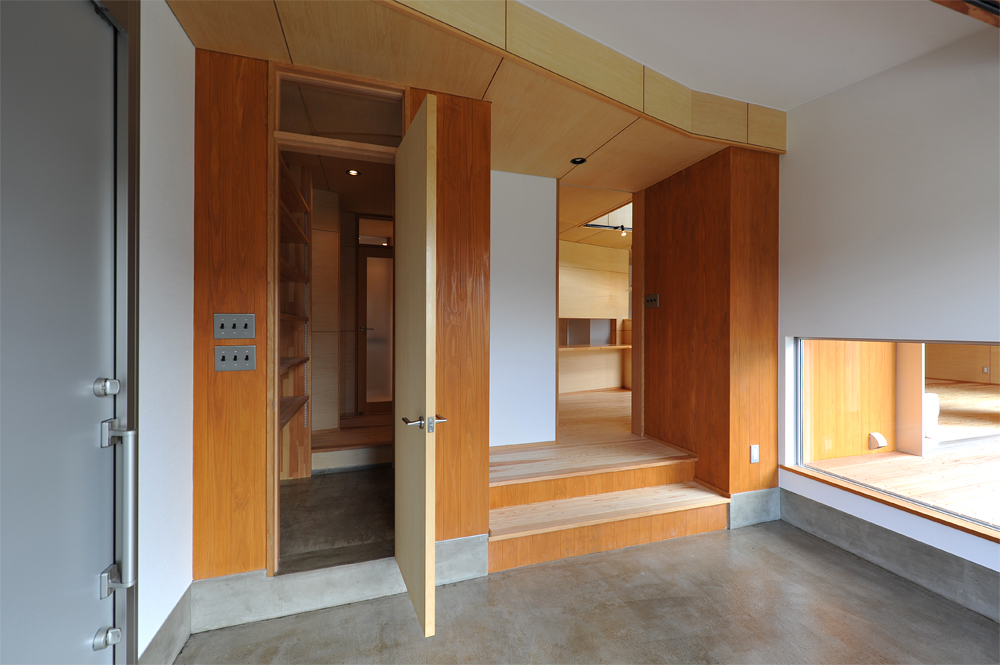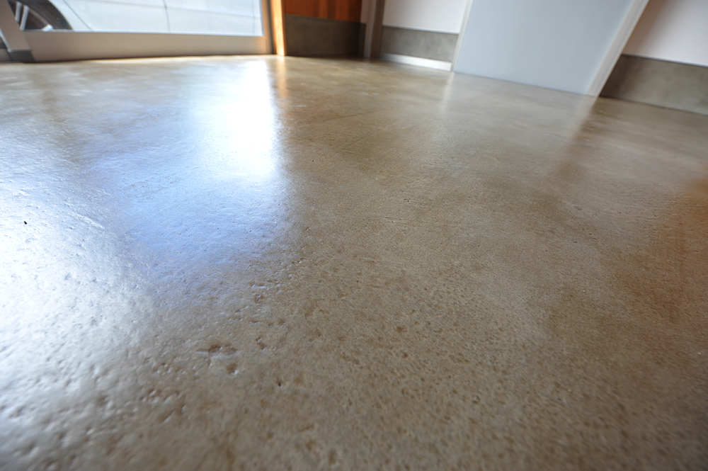 いずれはバイクなども置きたいという旦那さまのために、玄関のモルタルには耐水塗料を使っています。