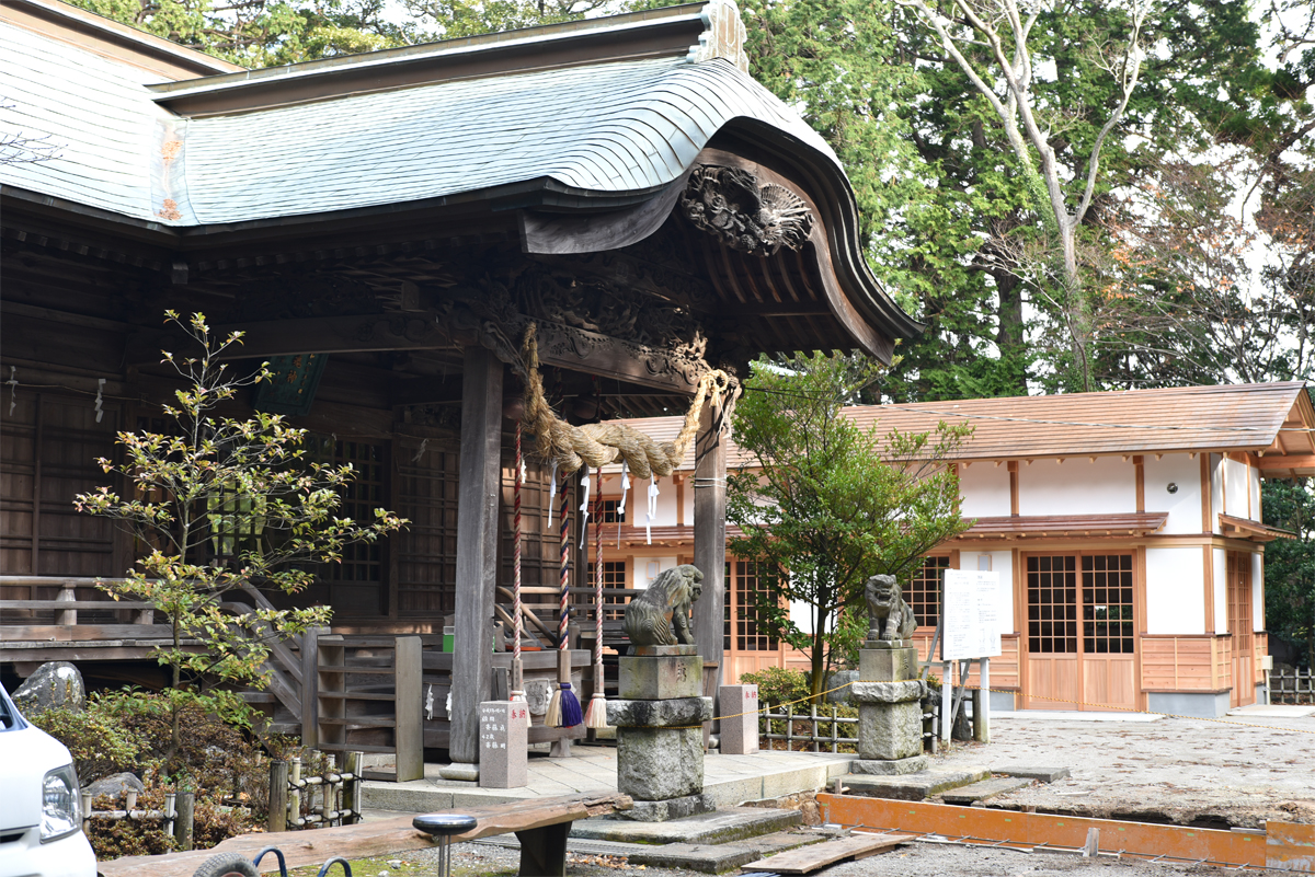 いわき市平菅波におよそ1300年前より鎮座する大國魂神社本殿の改修工事にあたり、本殿の御宮を一時的に移設する場所として仮殿の新築が行われることになりました。本殿の工事中は、仮殿を仮官としてご祈祷を行います。本殿の改修工事が終了後は、年始の初詣時の待機所やお祭り時の作業場所等になる予定です。