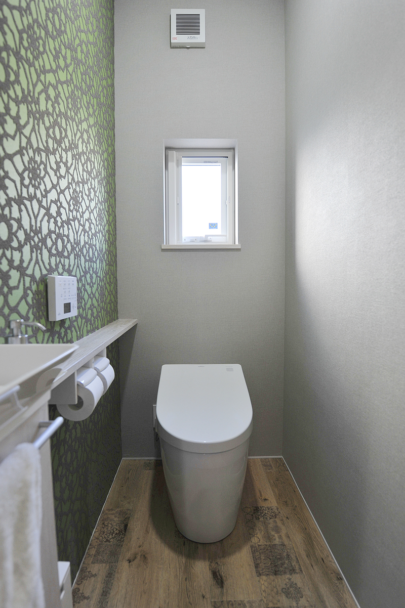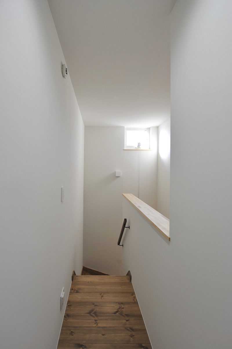 いわき市泉町の閑静な住宅街に完成したM様邸。道路に面してお施主さまのお母さまが暮らす母屋があり、その母屋の奥の敷地に建てられているため、敷地の面積が限られ、しかも土地の形はほぼ正方形と設計者泣かせの敷地でした。