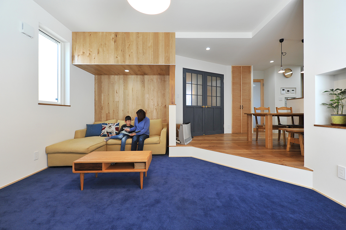 一方、回遊性だけでは、居住性は高まらないと後田さんは考えました。そこで、リビングの壁際、階段下の部分を「おこもりスペース」として確保し、三人がけのソファーを置きました。回遊性とは矛盾するようですが、隠れ家的なスパイスの効いた居場所があることで回遊性が引き立ち、居住性が高まってくるのです。