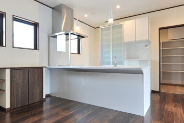 家庭の動線に行き止まりを作らず、図面上に円を描くように作られた動線。それが「回遊動線」。このたび後田工務所さんが手がけた住宅には、その回遊動線が効果的に組み込まれています。人と風が家の中を廻り、淀みのない暮らし。デザインと性能がハイレベルで融合し合う、後田工務所さんらしいお宅となりました。