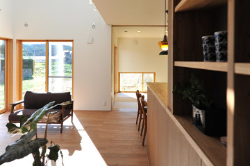 変形敷地に、母屋住居+厚生棟の2棟建設のためプランニングは大変でした、と設計担当の北瀬さん。周辺環境の眺めもよく、大きな窓から線路と道路が立体に並走しているのを眺めるのも一興。途中から寮としての用途も追加され一部2階建てとなりました。