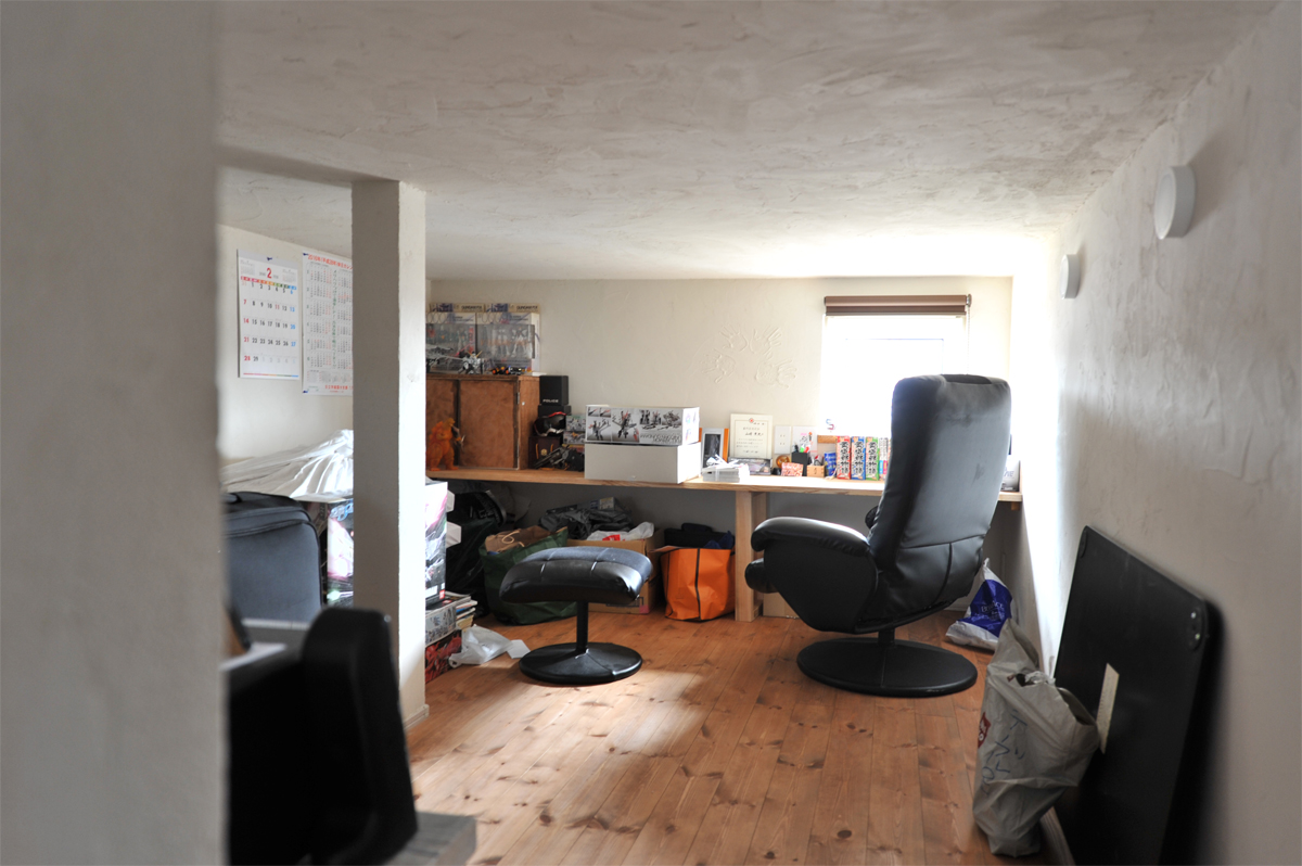 ロフト部分はご主人のスペース。塗り壁のコテ跡に奥様のご苦労の片鱗を感じて。