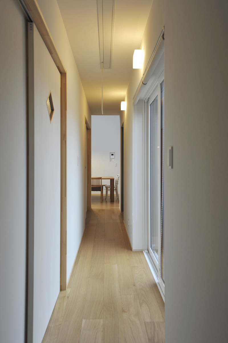 長期優良住宅の認定も取得し、断熱性能はUA値0.42W/㎡・K、北海道クラスを超えた仕様。夏の日射熱対策に外付けブラインドや外付けロールスクリーンも設置することで、快適性と省エネを高いレベルで実現した住まいとなりました。冬は暖かく、夏は熱溜まりを抑えた設計で涼しく、後田工務所一番の腕の見せ所です。高齢の親世帯も寒さを感じることなく冬を過ごせてとても快適だったとのこと。寒暖差が少なく高齢者にも優しい2世帯住宅です。