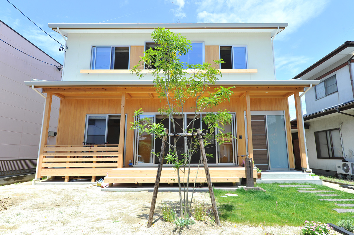 【長期優良住宅認定】D7H_5211内装だけでなく外装にも木をふんだんに使っています。ヒノキが優しい和モダンのイメージ。D7H_5219外構も建物のイメージに合わせてデザイン。D7H_5222吹き抜けのあるリビングを中心にほぼワンルームのような開放感のある1階。D7H_4241壁材は吸放出性の高いゼオライト(ホタテ貝殻入り)。有害物質も分解してくれます。D7H_5180和室建具は物置に片付けて、夏はさらに広々と生活します。D7H_5145対面式のオリジナルダイニングキッチン。スタッフの直井さんと綿密な打ち合わせを繰り返しました。D7H_4199フルオーダーのオリジナルキッチン。細かな道具の収納まで計算して設計。引き出しはソフトクローズレールでスムーズ。床は水に強い青森ヒバ。D7H_5200キッチンから和室まで目が届きます。吹き抜けもあるので家族の気配がどことなく伝わります。