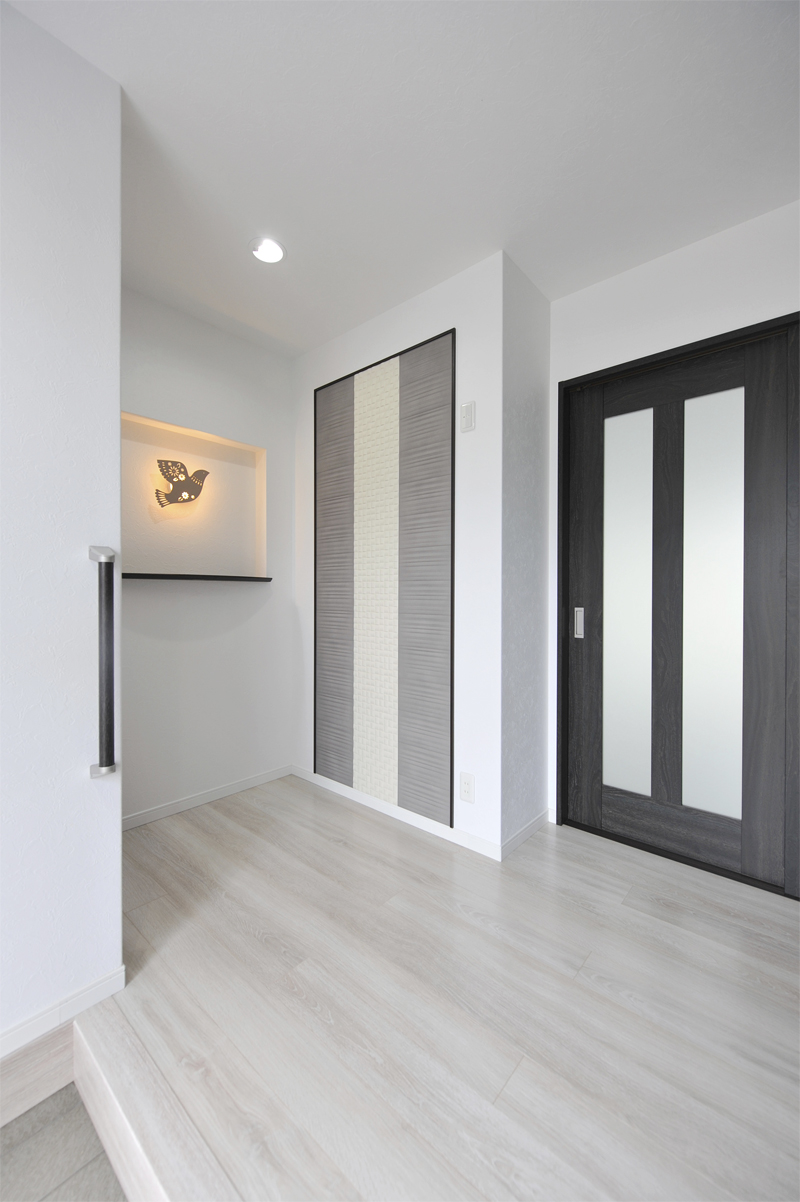 玄関にエコカラットと可愛らしい鳥のウェルカム照明