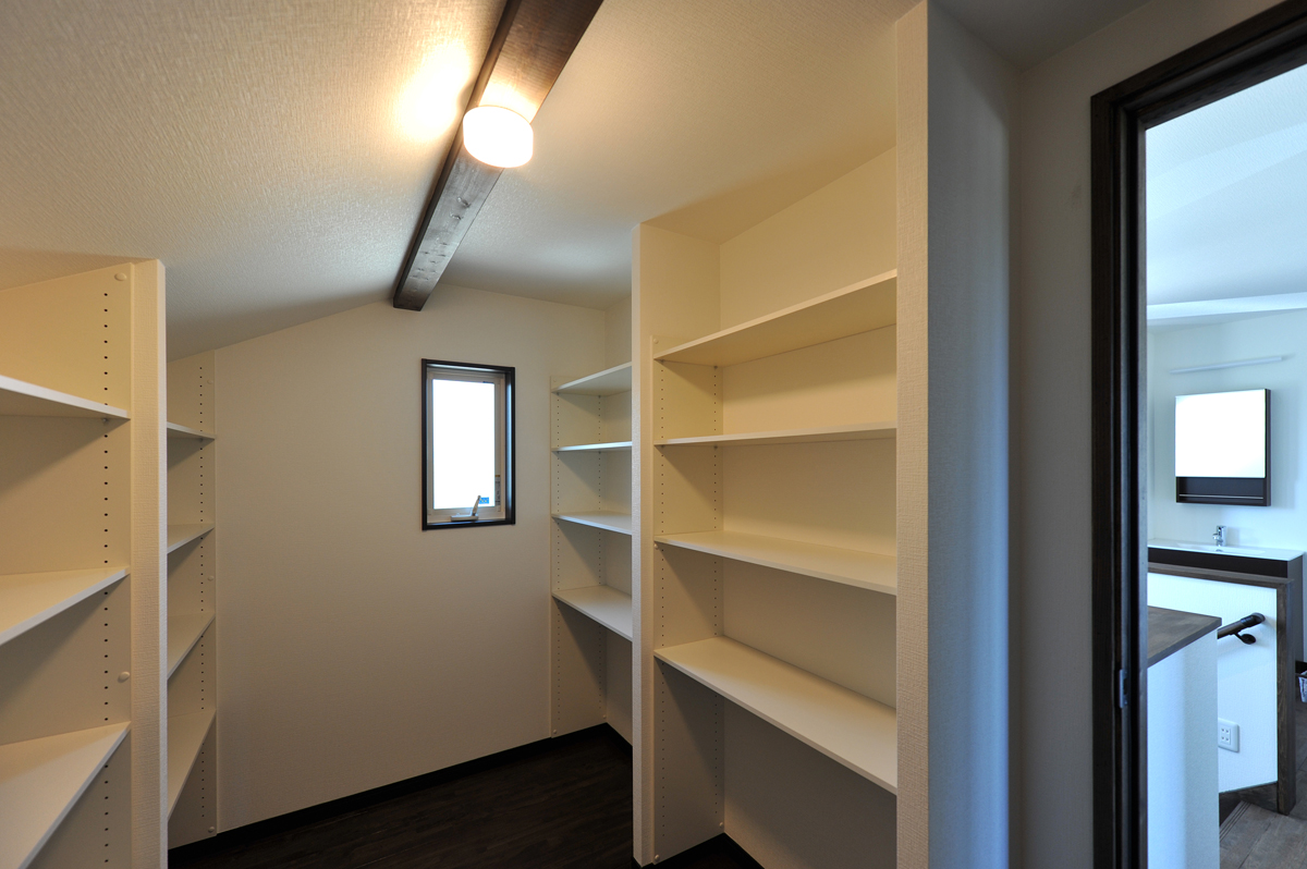 とにかく収納力が格段に多いお住まいです。現在の家で不満な点、お困りの点をヒアリングしたところ、収納が少なく、荷物が入りきらなくて困っているとのことで、大容量の収納を希望されていました。ゆとりのある53坪の住宅にできるだけの収納を入れ込みました。家ナビが取材した中でも最も収納が多いお住まではないでしょうか。