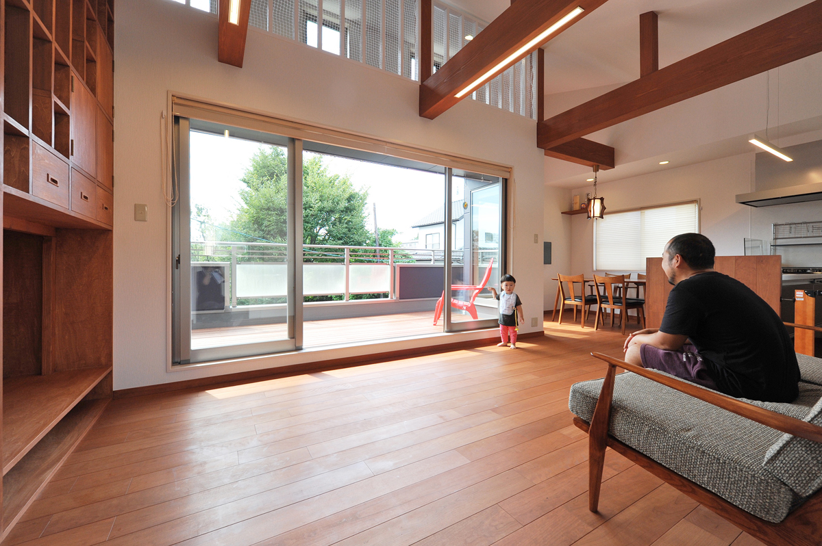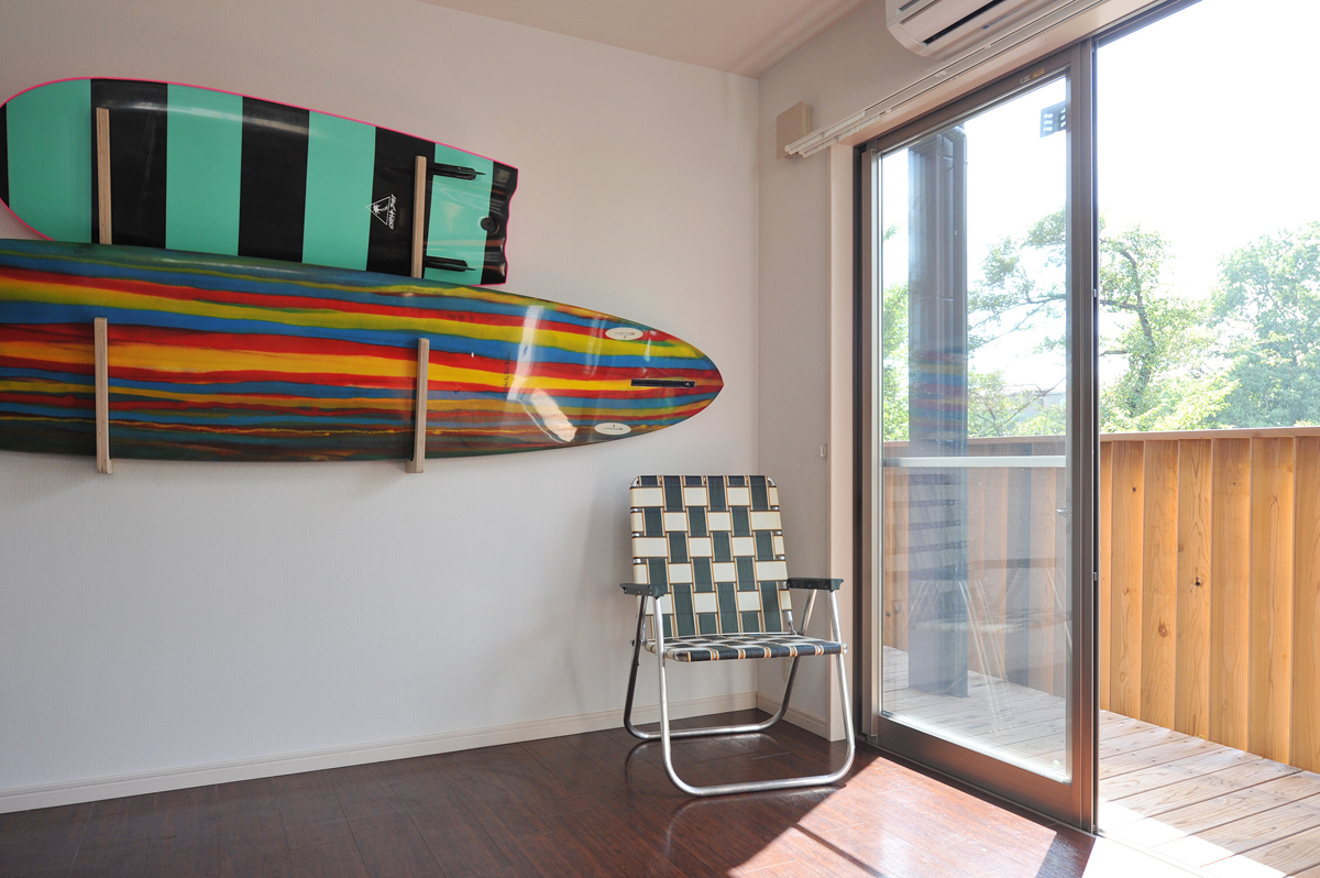 サーフィンが趣味のご主人は、「アクメというアメリカの家具メーカーが大好きなので、そこの家具を基準にL.Aやカリフォルニアの雰囲気で、自然素材でまとめたい。」とはっきりとしたイメージがありました。設計デザインは、仕事を通して既知の間柄だった環デザイン舎の北瀬さんに依頼しました。