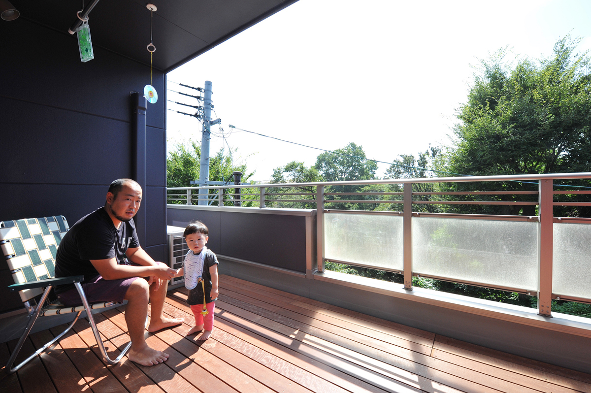 外と中がつながるような、質感の高い耐候性のある木製デッキを設置。公園の景色を独り占め。