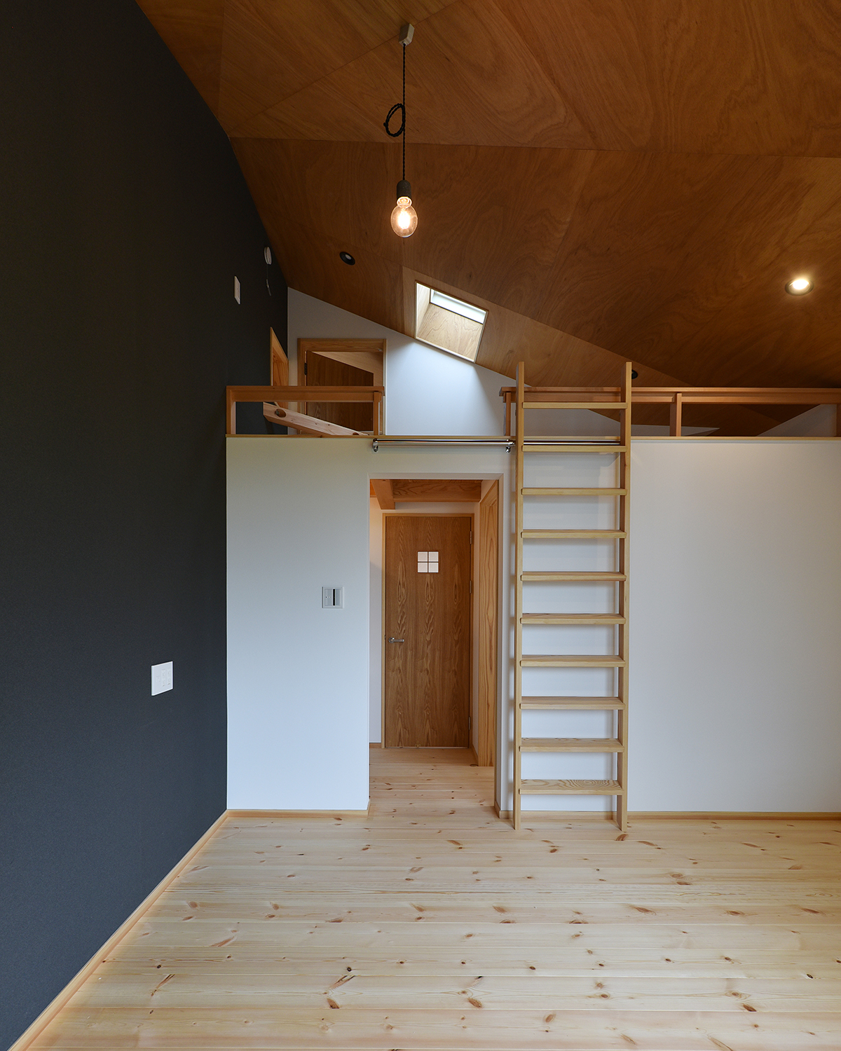 2階のもう一つの個室。1階リビングの天井高を上げている分1段上がっている。