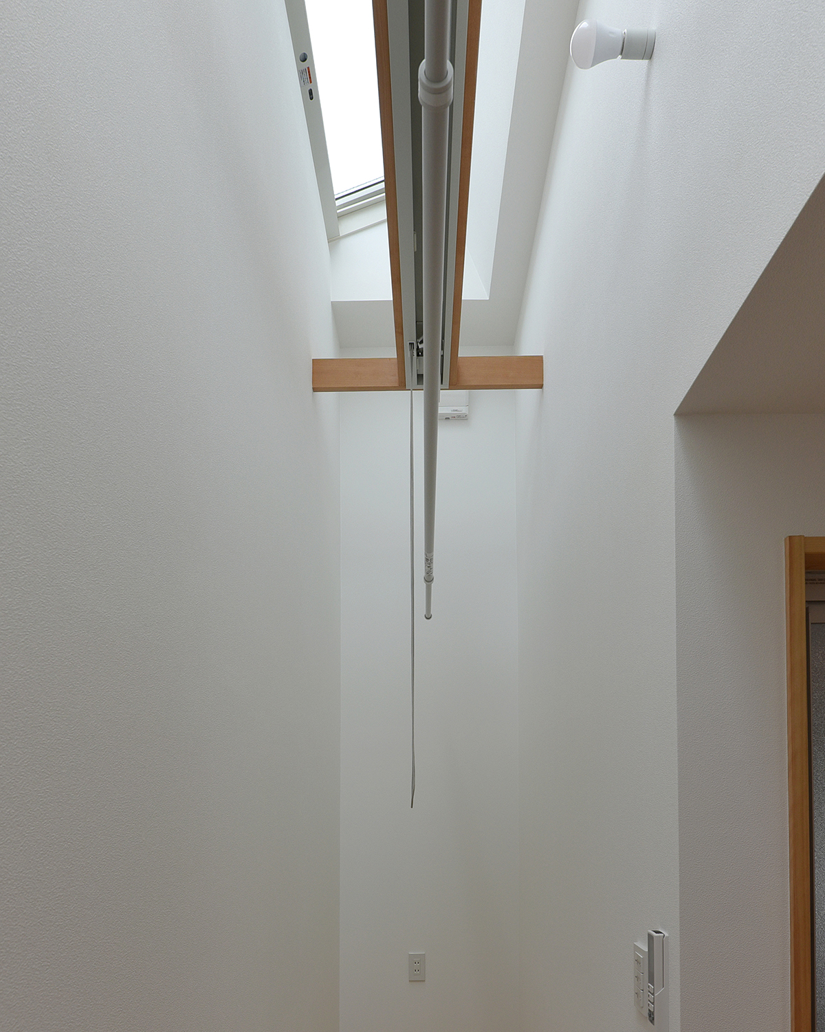 物干し場は電動開閉のトップライトウィンドウで採光・通風も確保。