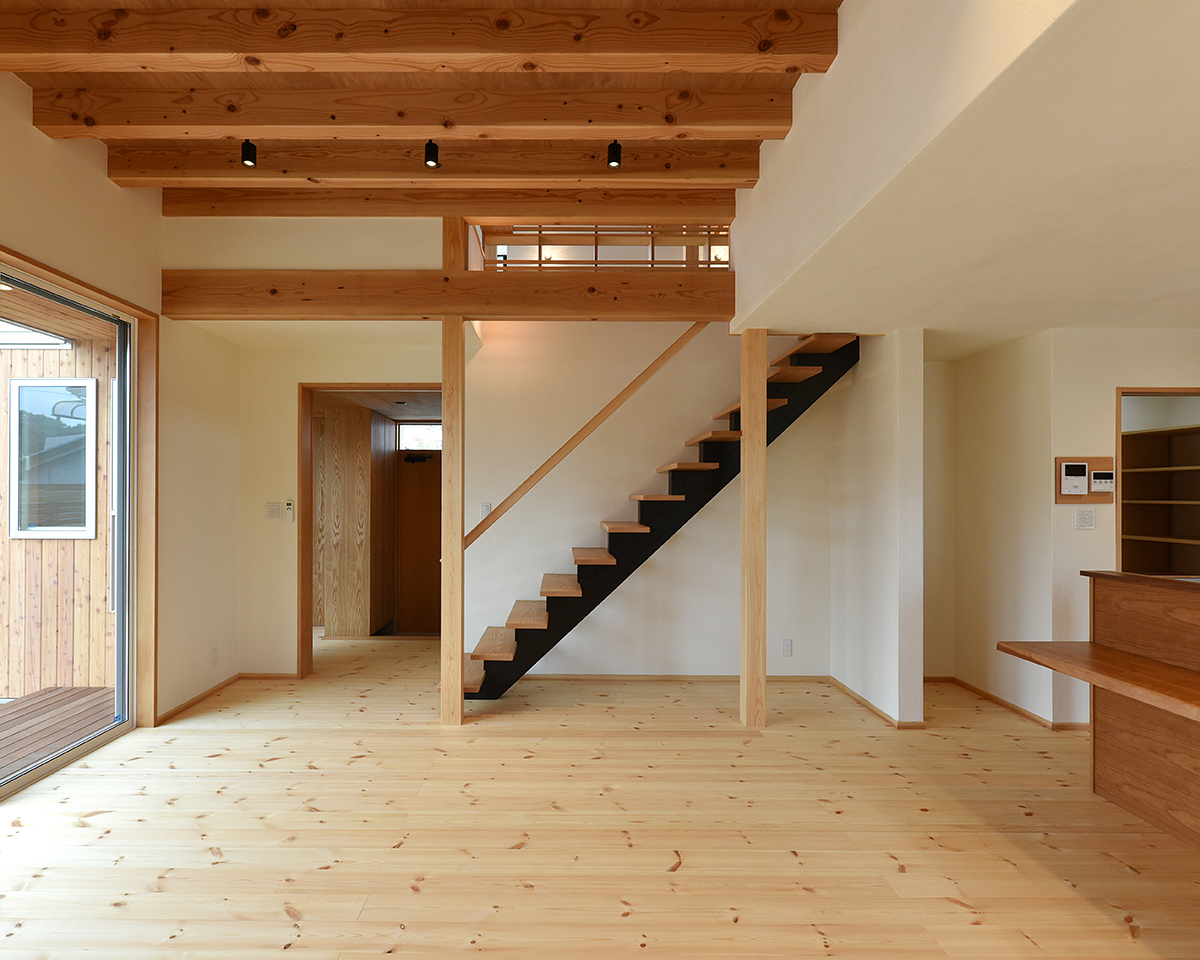 ④南からの風を考え南北にのびたリビングとし部屋全体に風が通る