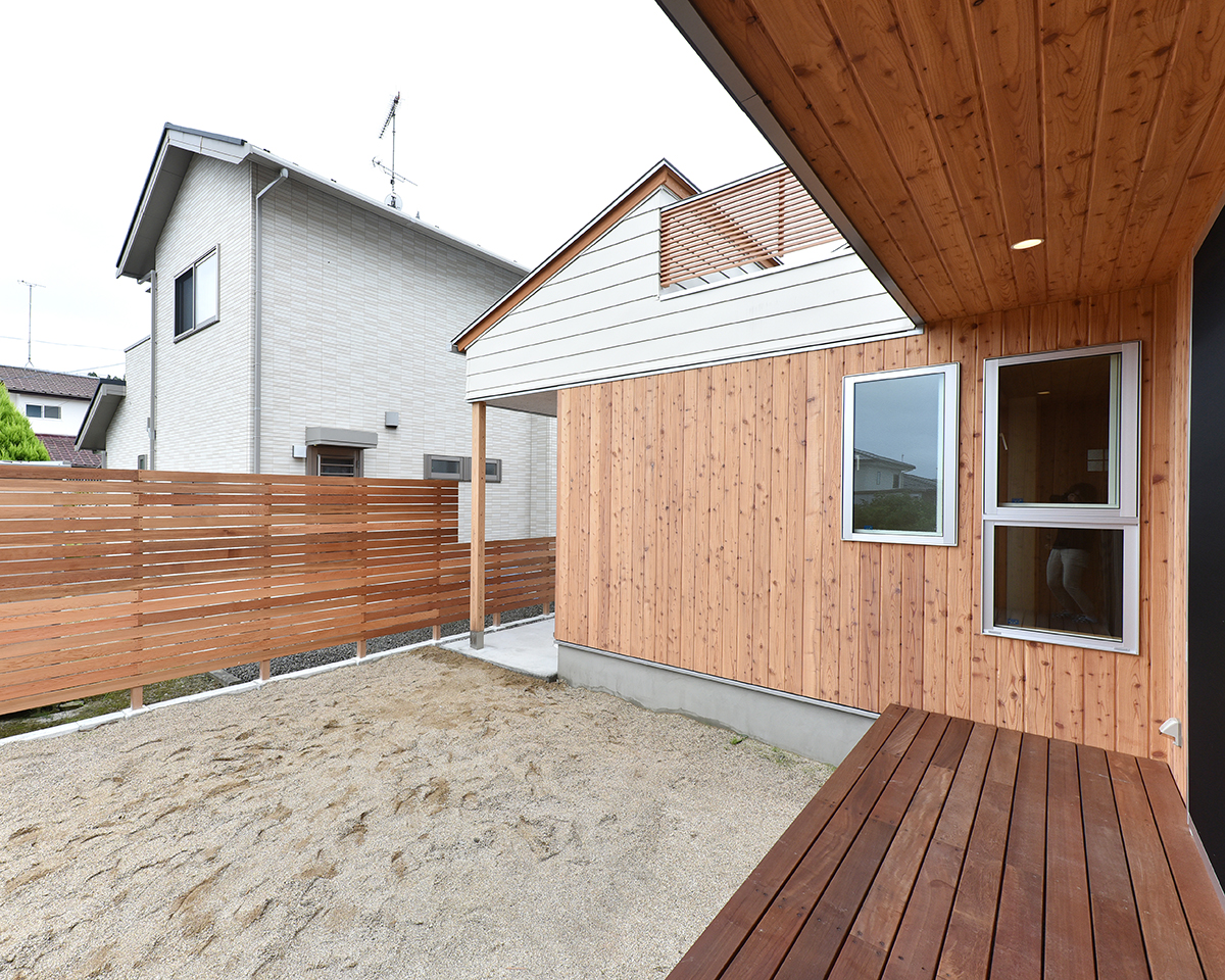 木製(レッドシダー)の塀に囲まれたプライベート感を大切にした庭。