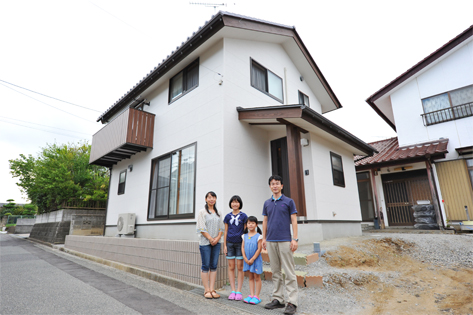 震災で前宅が被災し住めなくなったため、ご主人の実家の敷地内に家を建てることになった建主様。後には実家があり、敷地も建坪も限られてきますが、「小さくても木の香りあふれる家にしたい。」一家の主として建主さまは自分たちの理想を叶えてくれる建築会社を探しました。