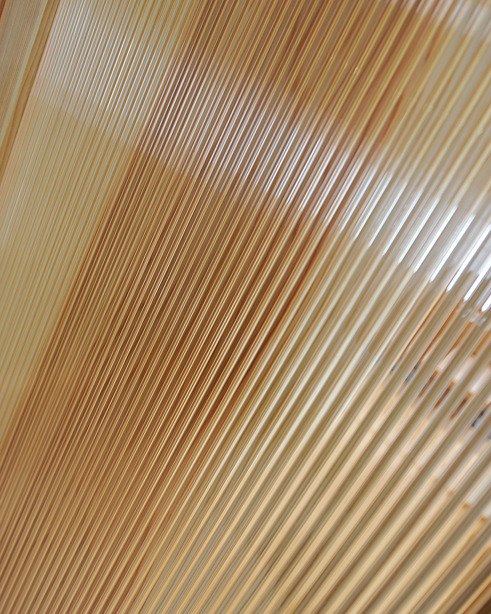 和室の入り口の引き戸の造作。中空ポリカーボネートに細い棒状の杉を一本一本仕込んで、木の年輪が浮き上がるように細工しています。