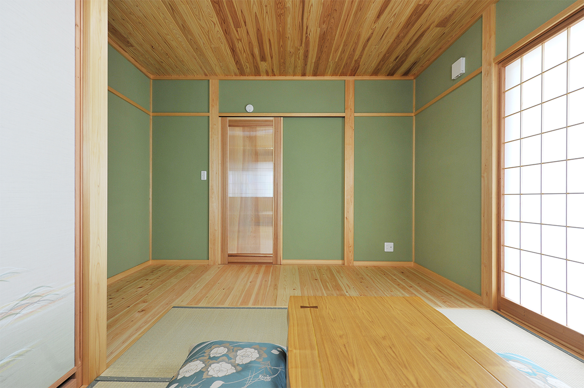 抹茶色が素敵な広々としたお母様の和室。